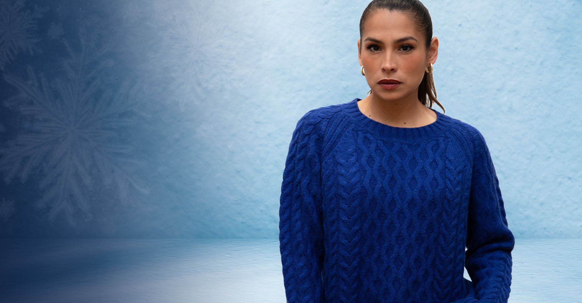 Our fancy knit wool sweater provides a contemporary twist on a classic style for winter.