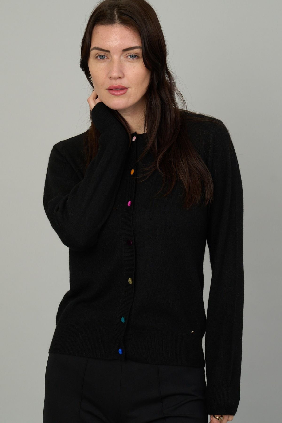 A 100% cashmere cardigan with a soft silhouette, ,open front, and cozy feel.