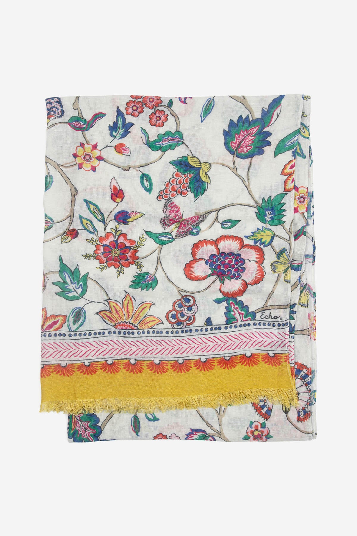 Embroidered Fringe Shawl