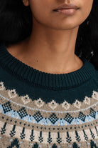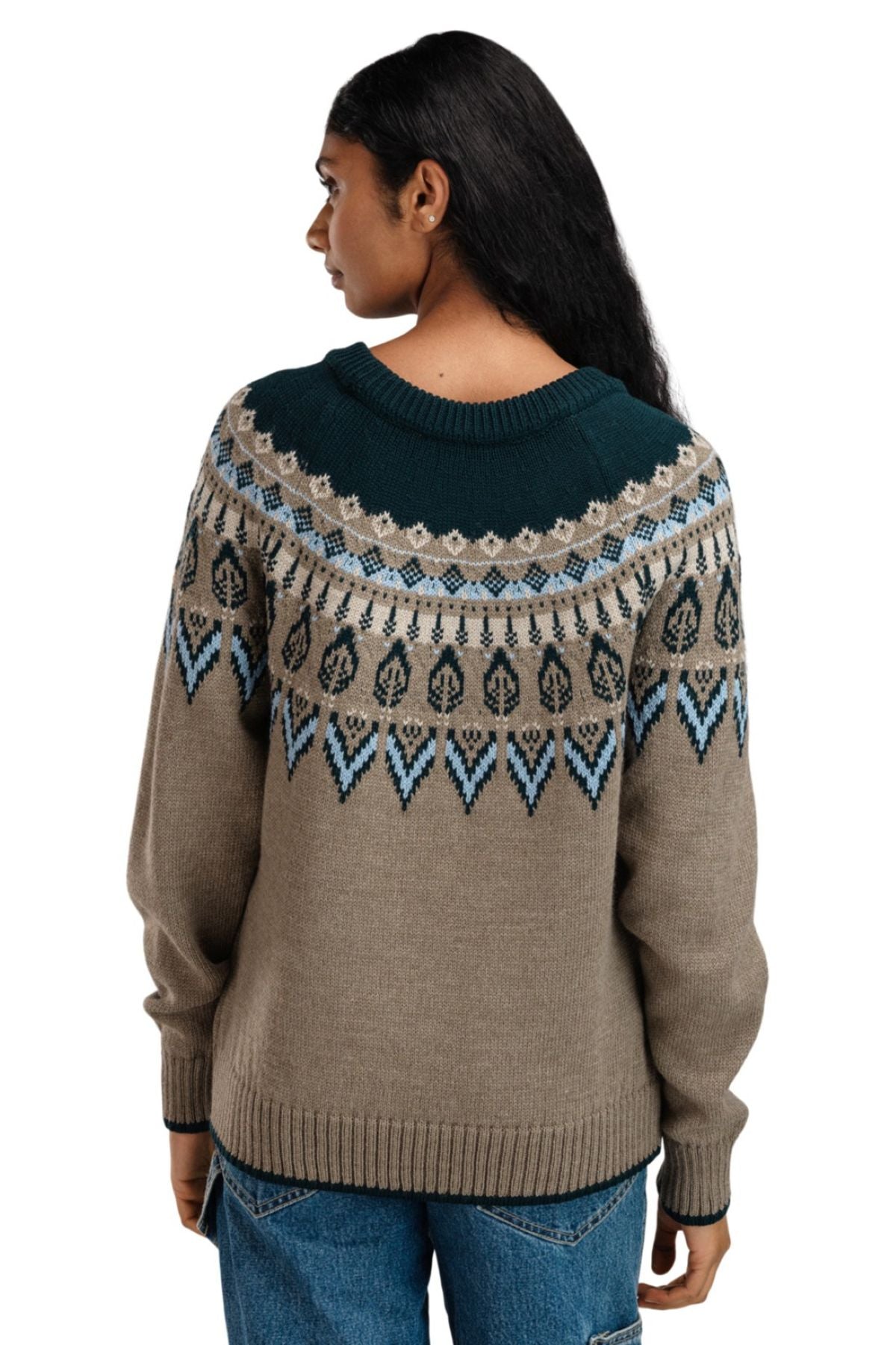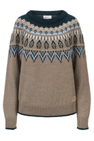 A heavy, patterned wool sweater with a relaxed fit. The sweater is designed to look like a round-knit sweater, but has a classic construction with raglan sleeves. Sula is a thick and comfortable sweater knitted in 100% long-lasting wool.