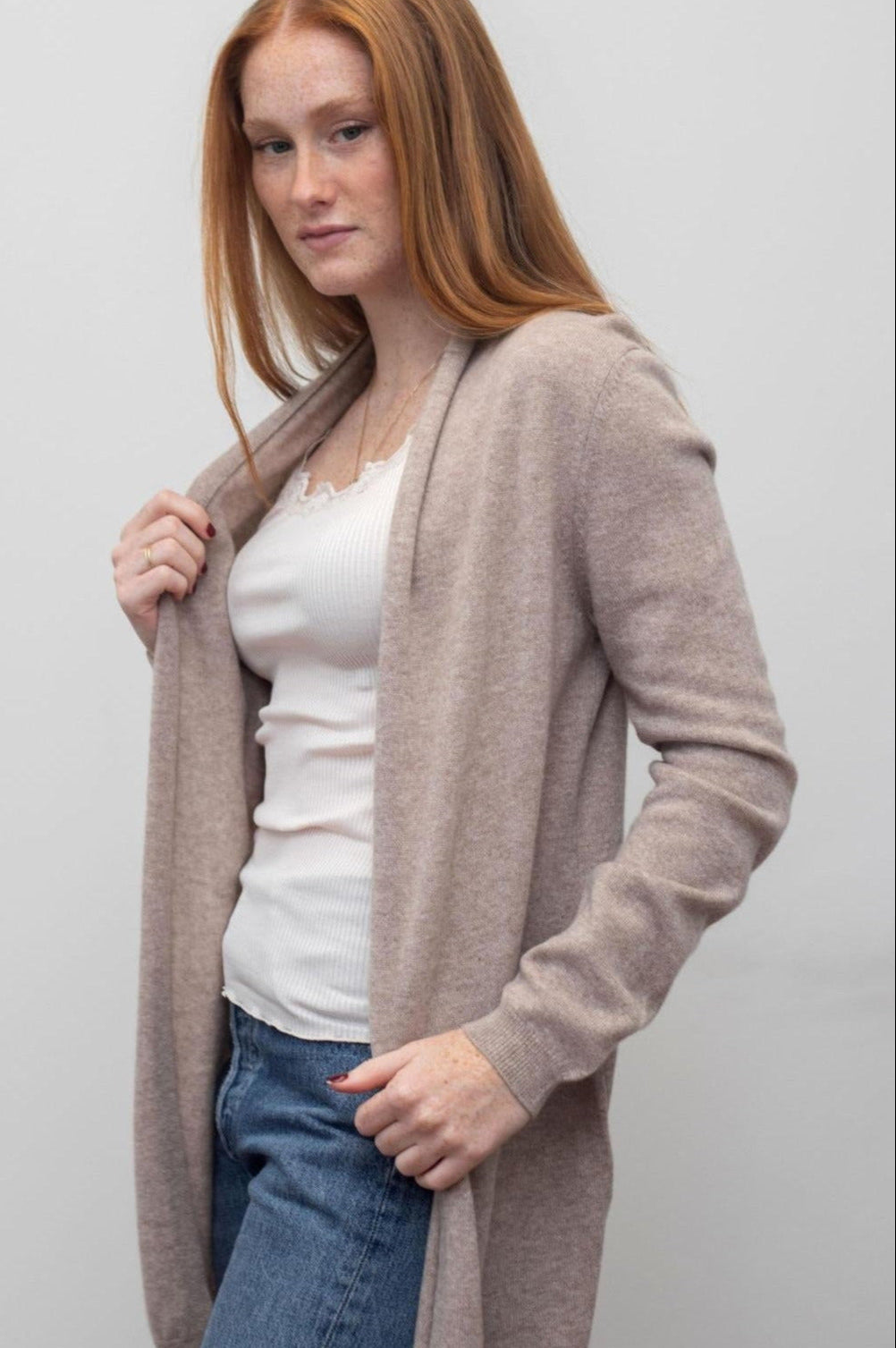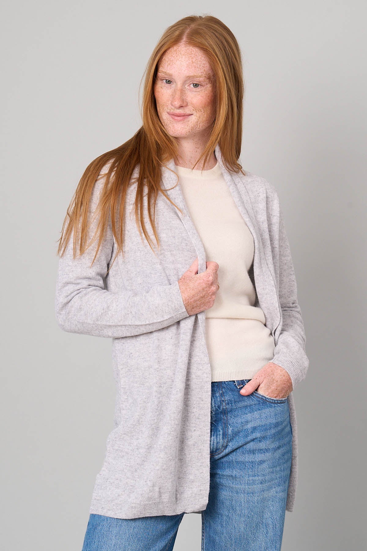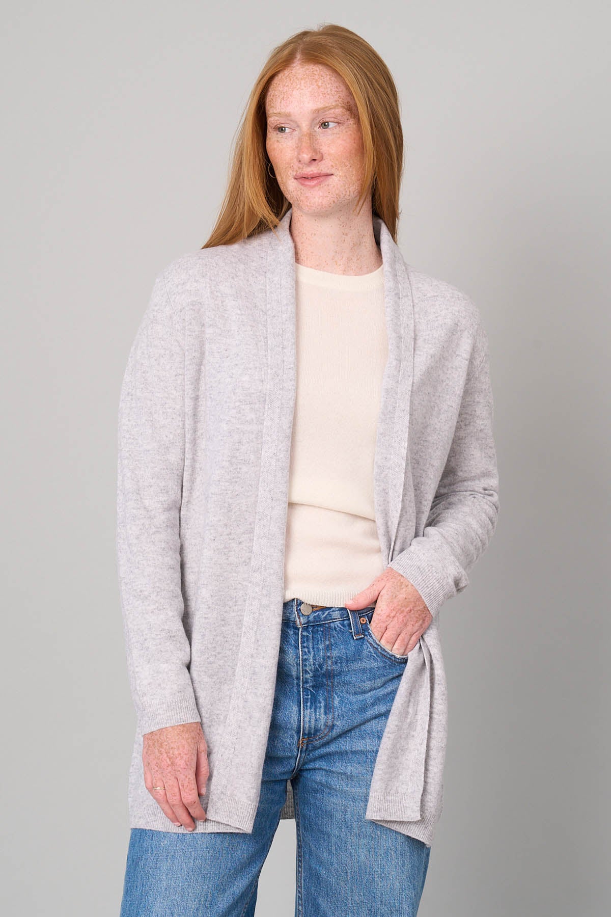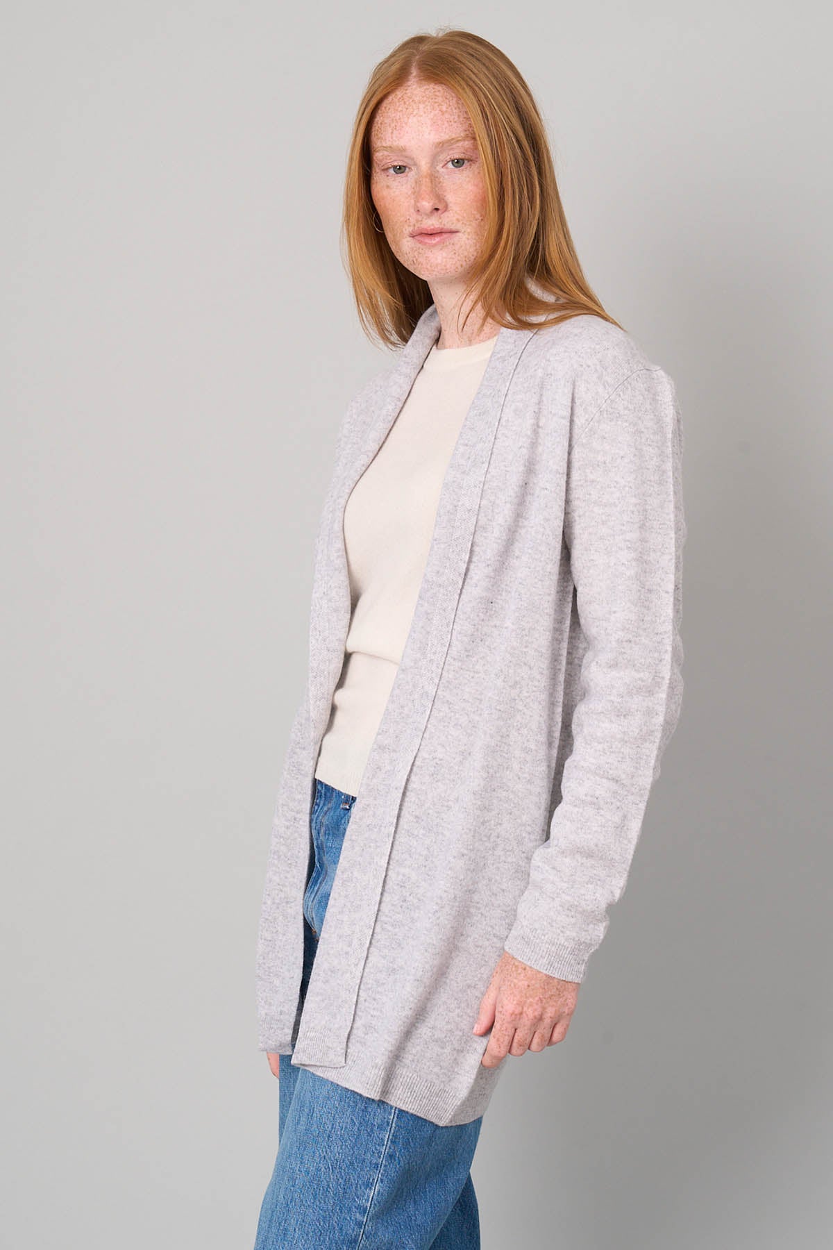 A cardigan with a soft silhouette, open front, and cozy feel. The simple neck without a collar and light hem detailing makes this the perfect cardigan for versatile wear.
