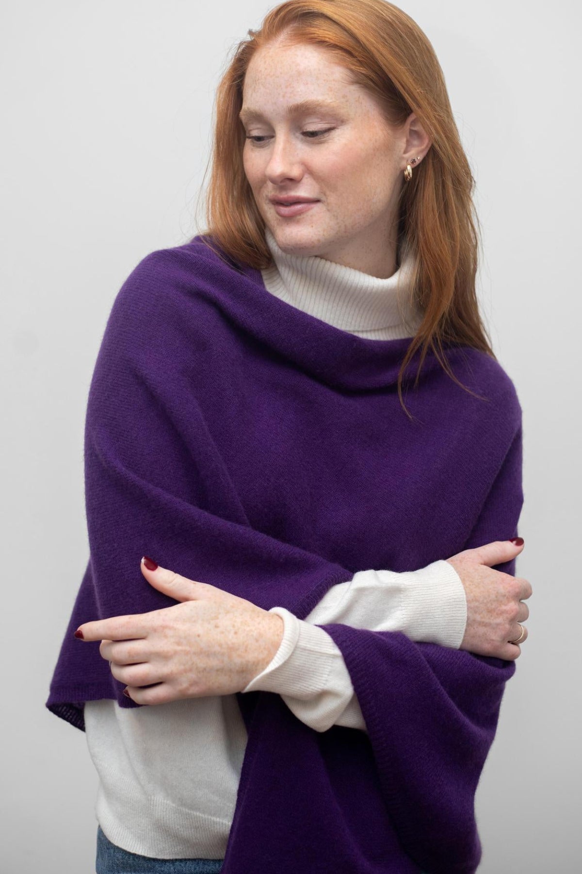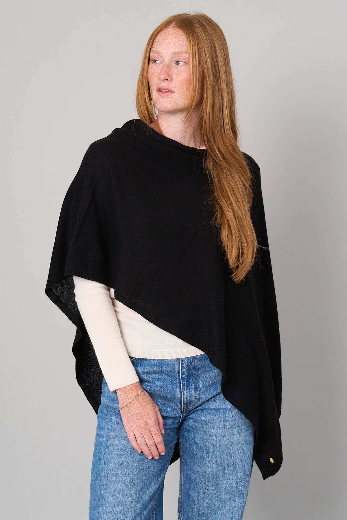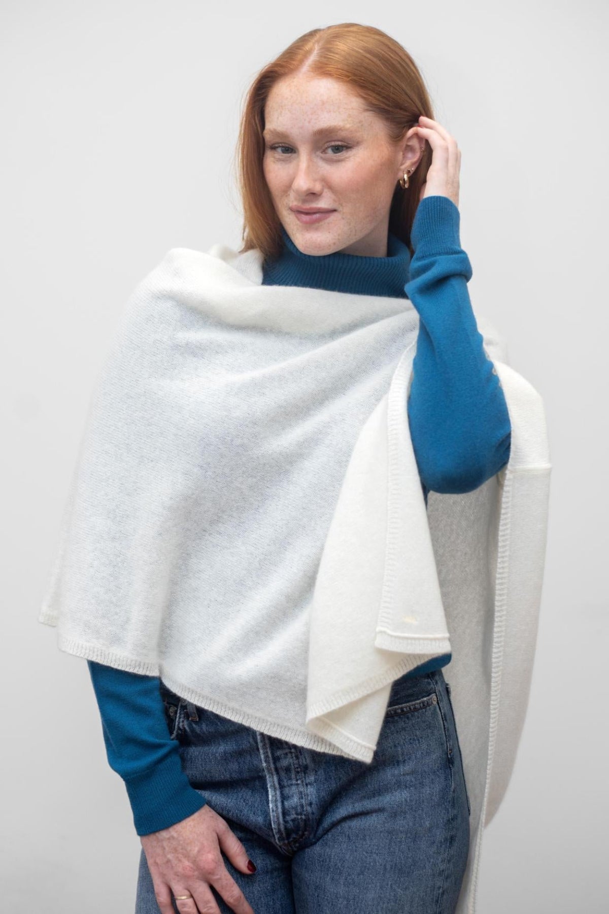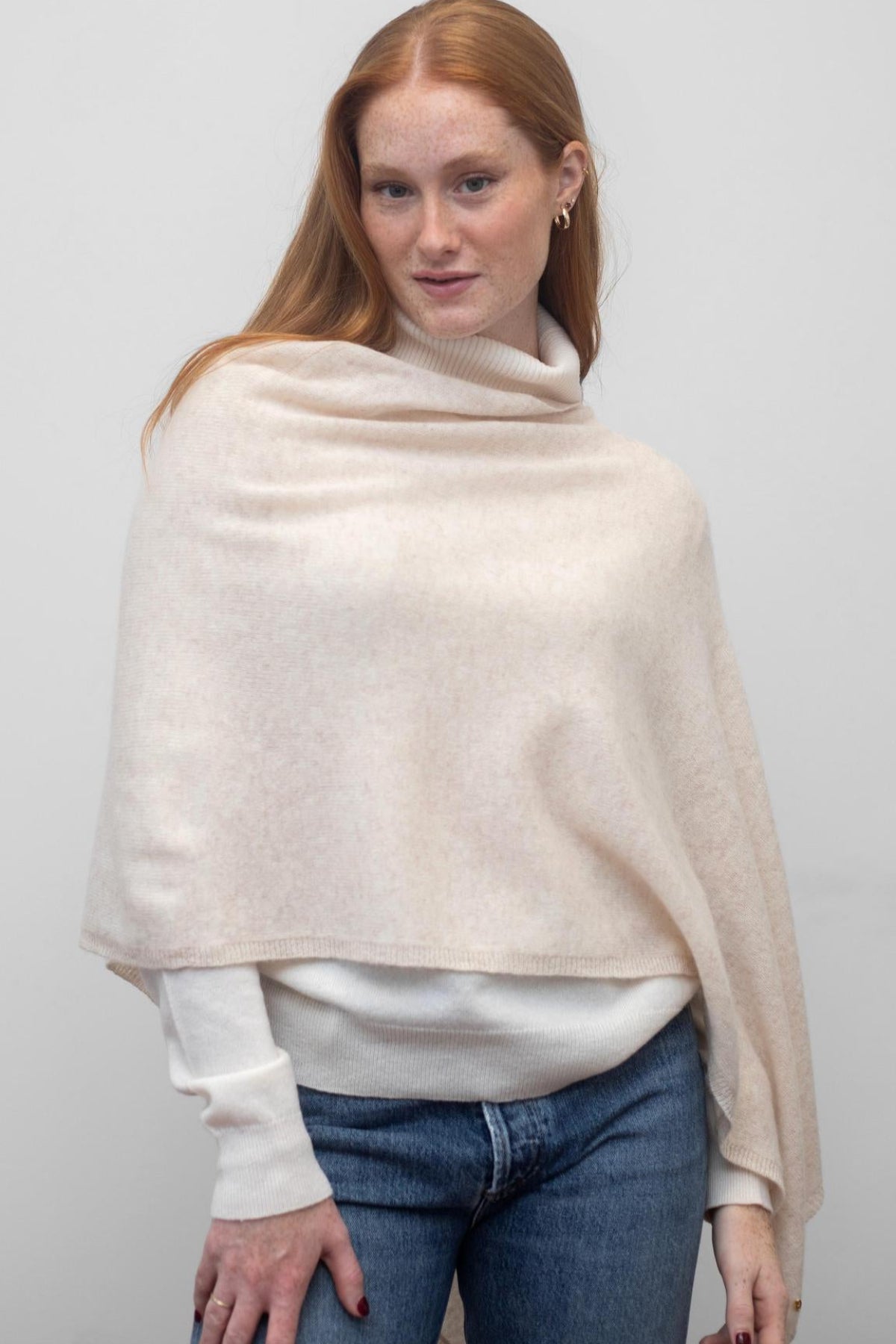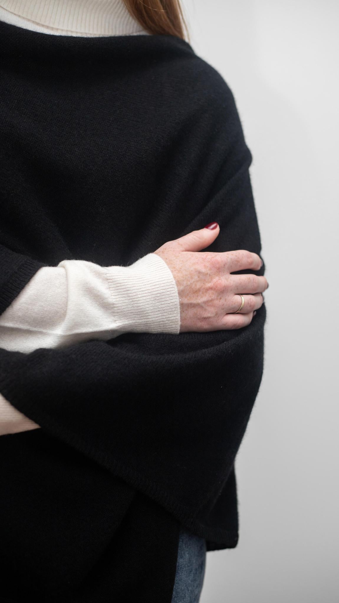 Our 100% cashmere Daisy Topper is the newest addition to the Lemonwood Cashmere Collection.  This shorter style in a rectangular shape is ideal for any weather, great over leggings, a beautiful addition to any evening look, and a cozy travel companion. It pairs beautifully with our Classic Turtleneck to keep you cozy all season.