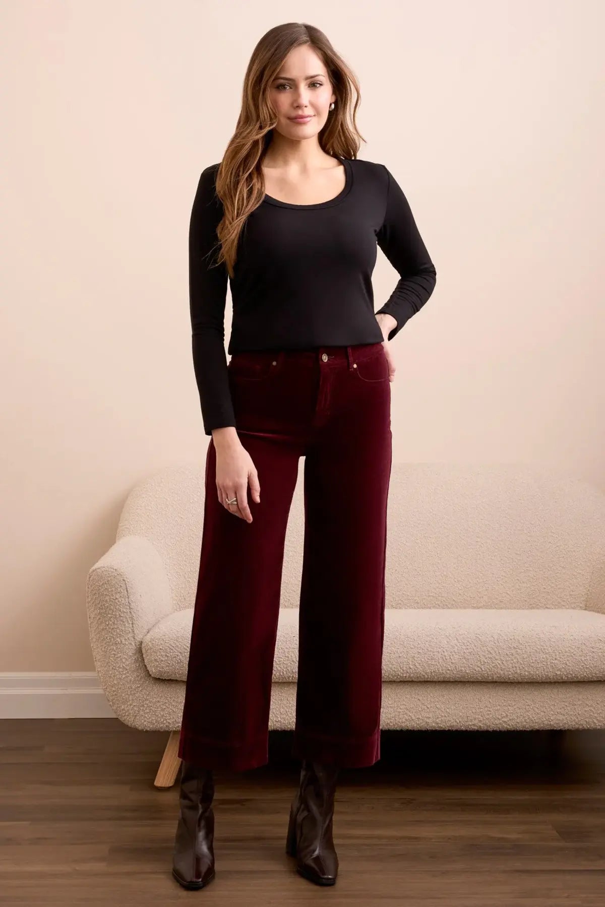 Channel retro vibes with these wide-leg pants, featuring a flattering high-rise fit. The five-pocket design offers ample space for your essentials, while the soft corduroy fabric, enhanced with stretch, ensures easygoing comfort and flexibility.
