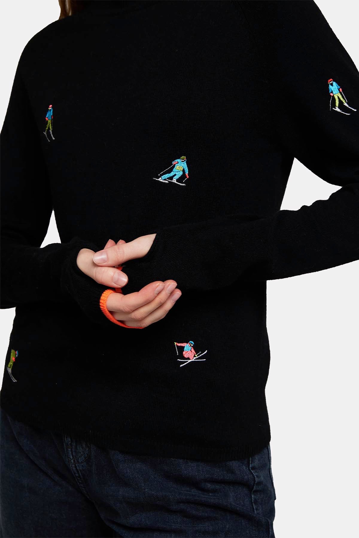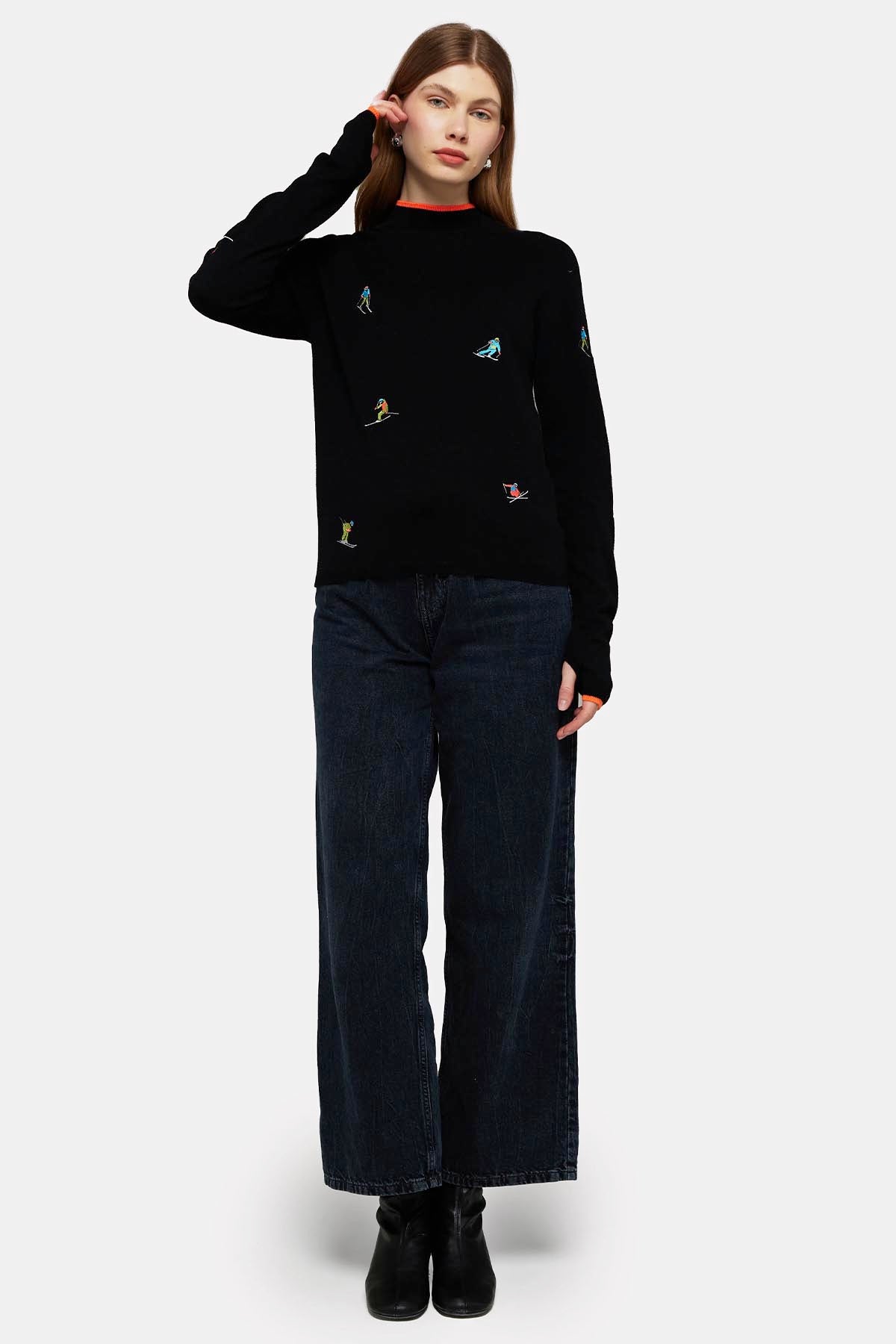 Ditsy Ski Embroidery Mock Neck