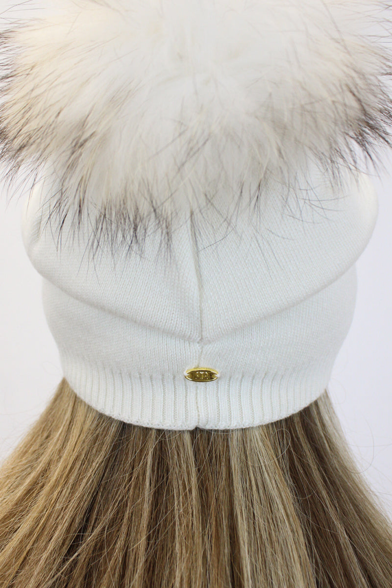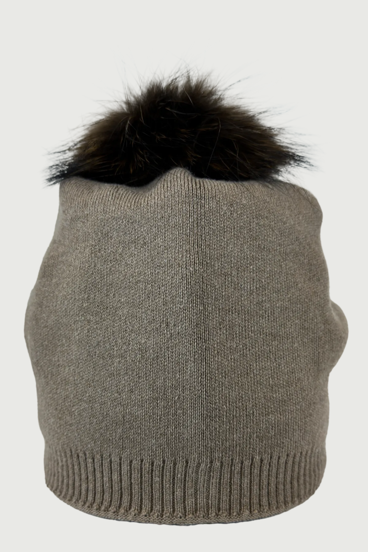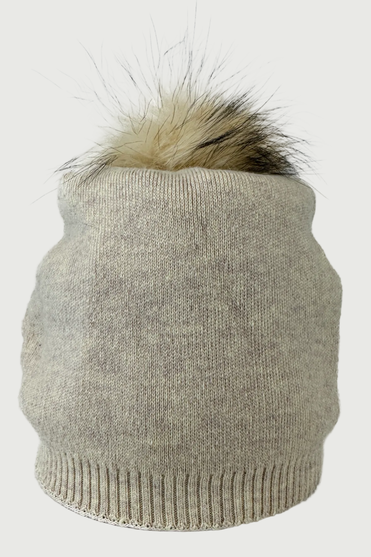 Keep warm while looking cute with this cashmere blend hat. Double-layered for extra warmth with a pom that falls to the back of the head. If you feel like a more classic style suits you, easily remove the pom because of its snap fastener. And easily reattach when it works for you!