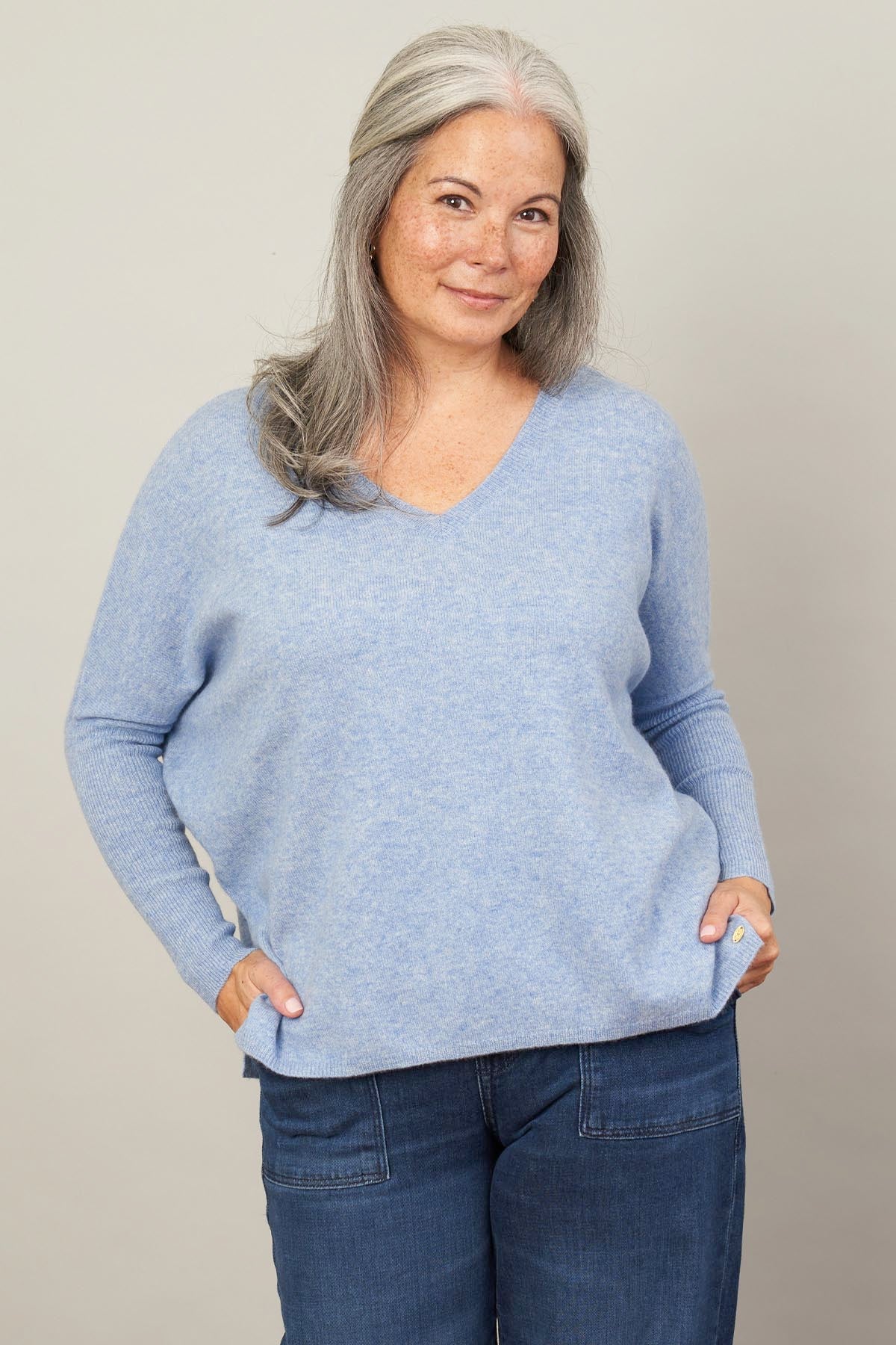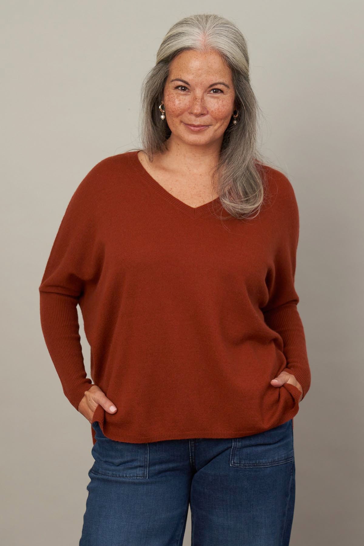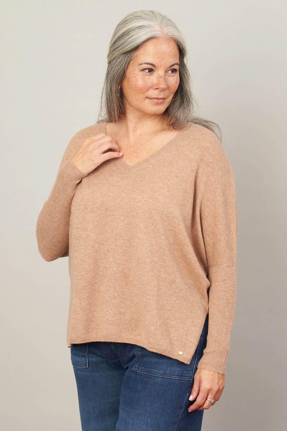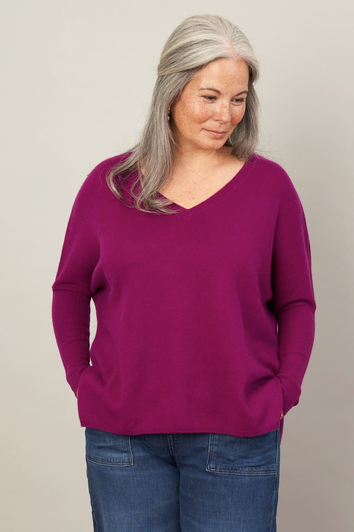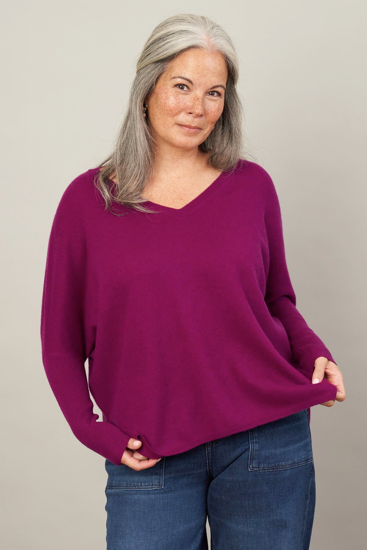 Introducing the newest addition to the Lemonwood Cashmere Collection: the Haddi V-Neck Sweater. Crafted from 100% luxurious cashmere, this elegant piece features a refined ribbed v-neckline, understated batwing silhouette with fitted sleeves, and side slits for ease of movement. Designed with a straight hem that rests at the hip, it promises to be effortless and chic.