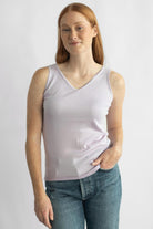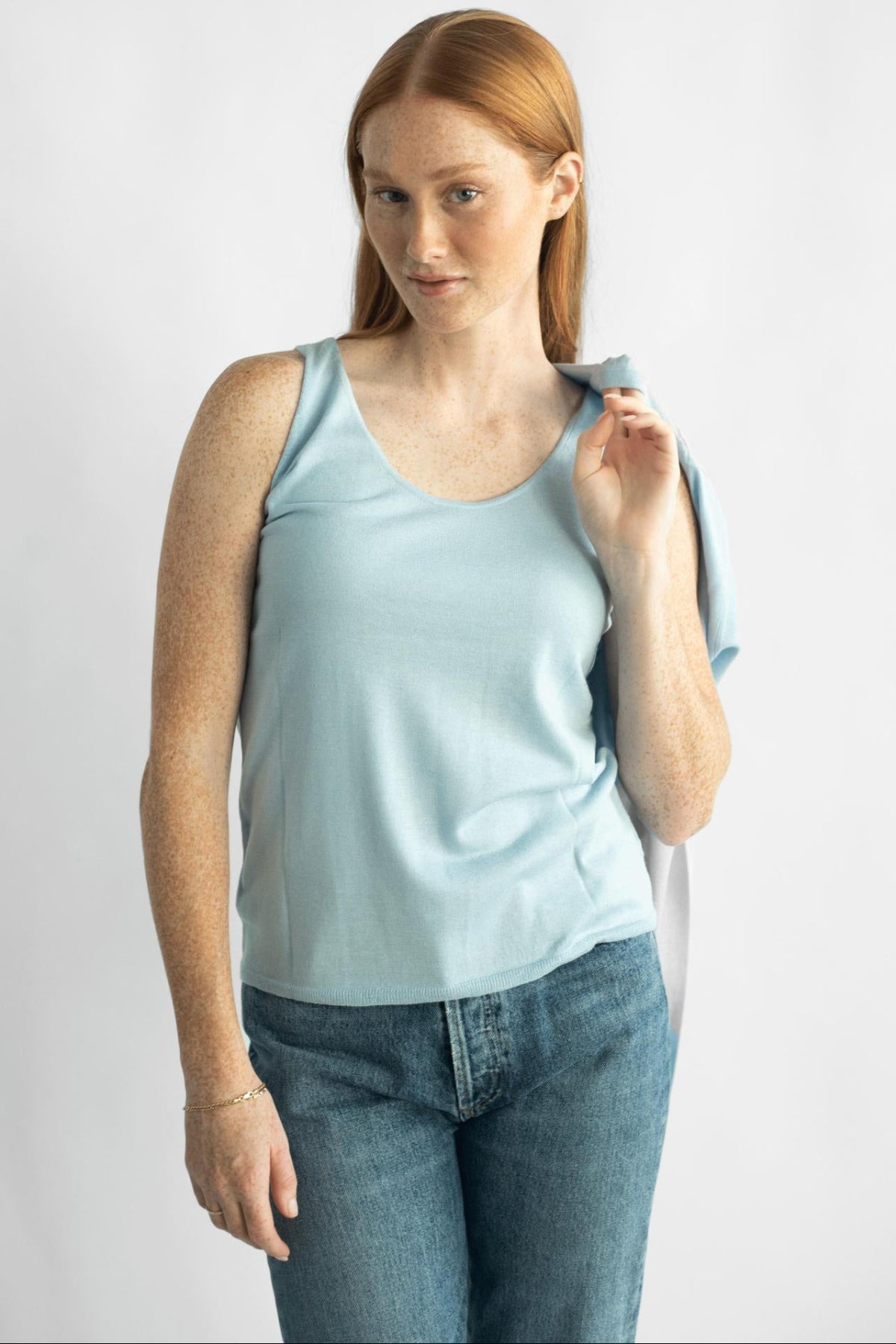 The Juliette Tank is perfect for all seasons. Made with a blend of silk and cashmere for extra softness and comfort. The tank can be reversed for a v-neck or a round neck option.