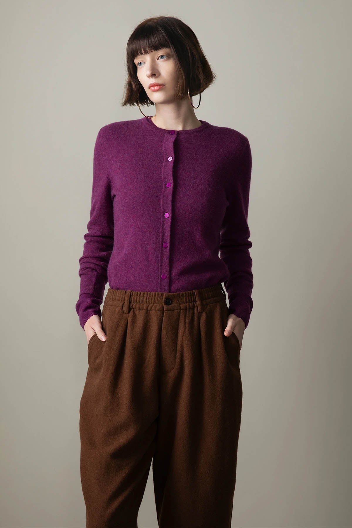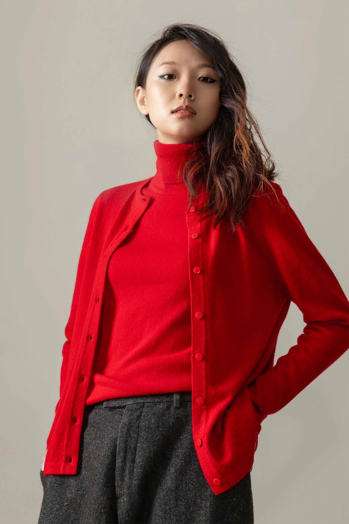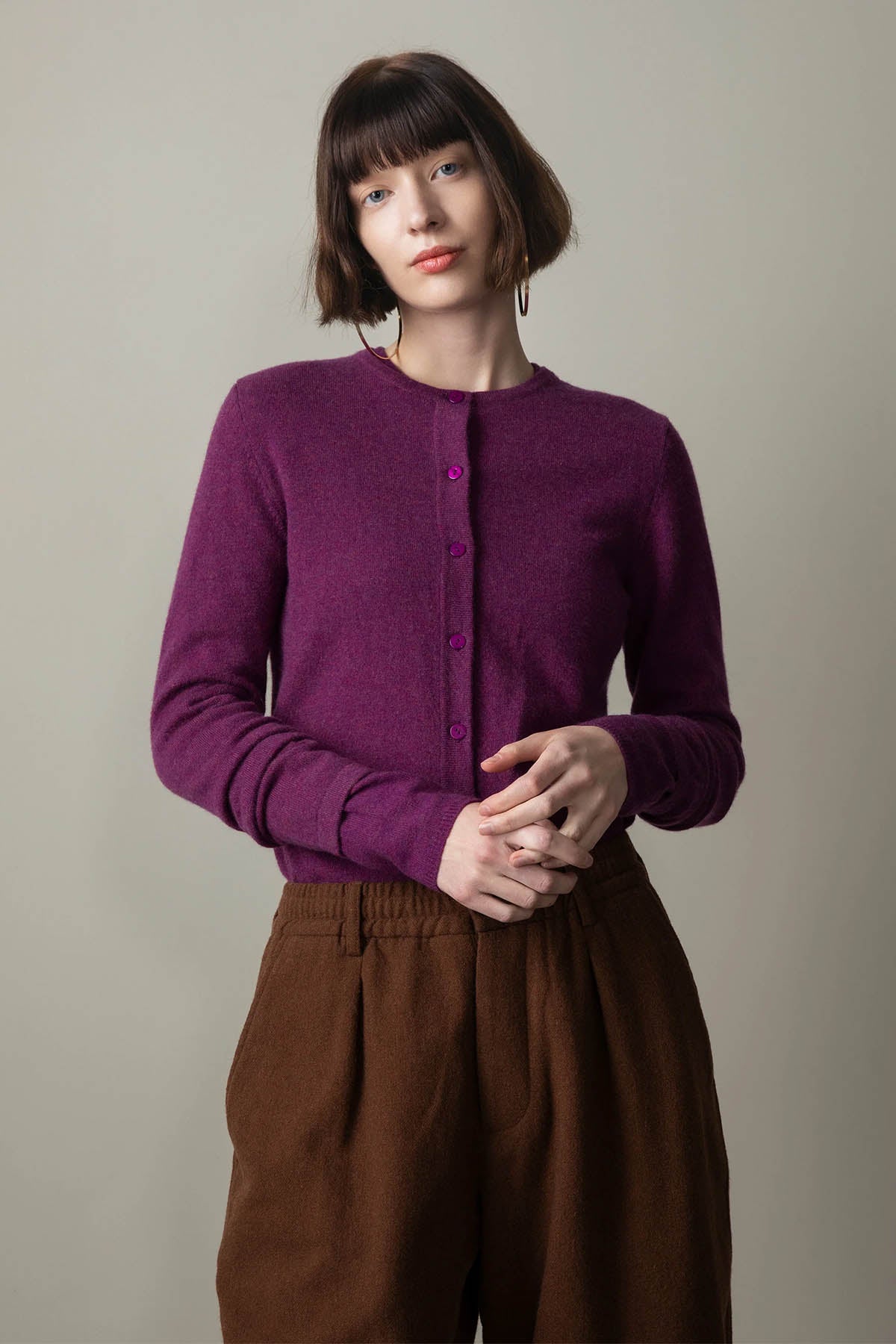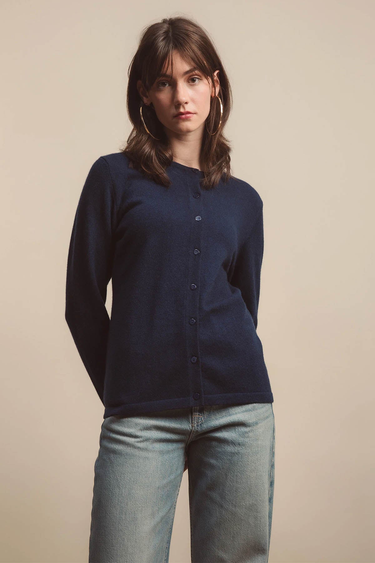 The High Button Cardigan is our take on the classic 50s style cardigan. Made from 100% cashmere with a slightly fitted style, it can be layered or worn as a stand-alone piece.