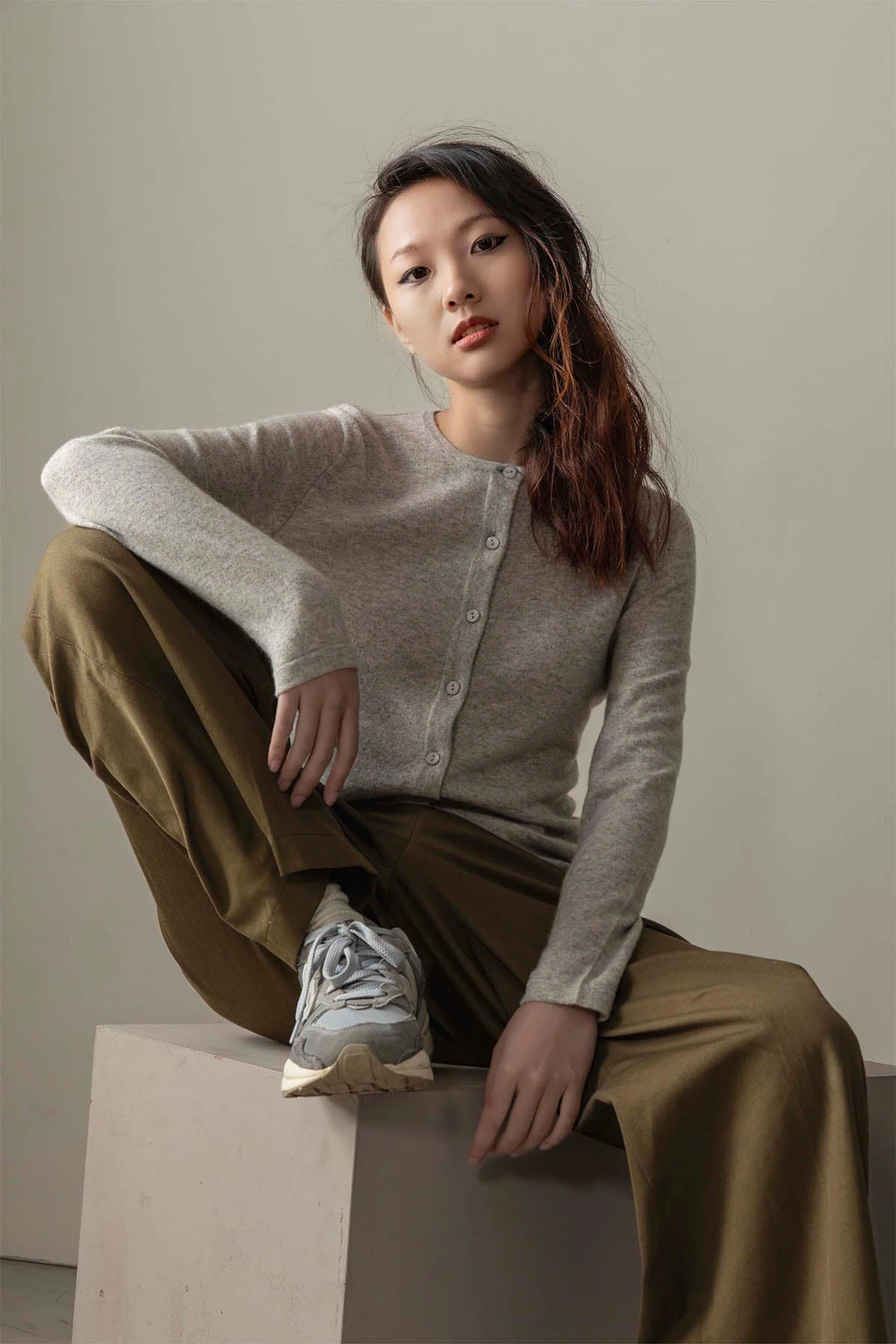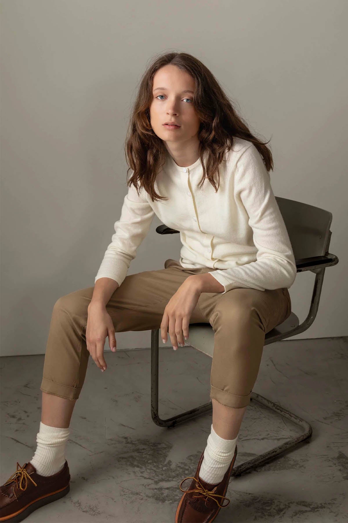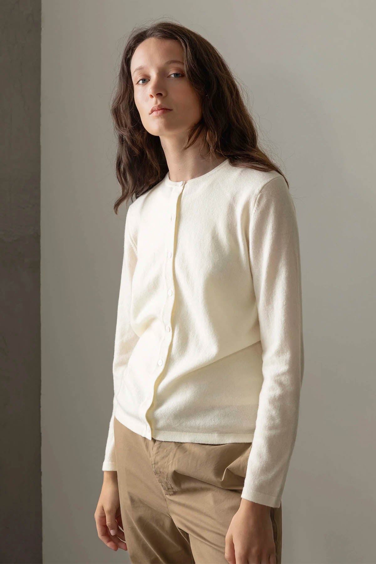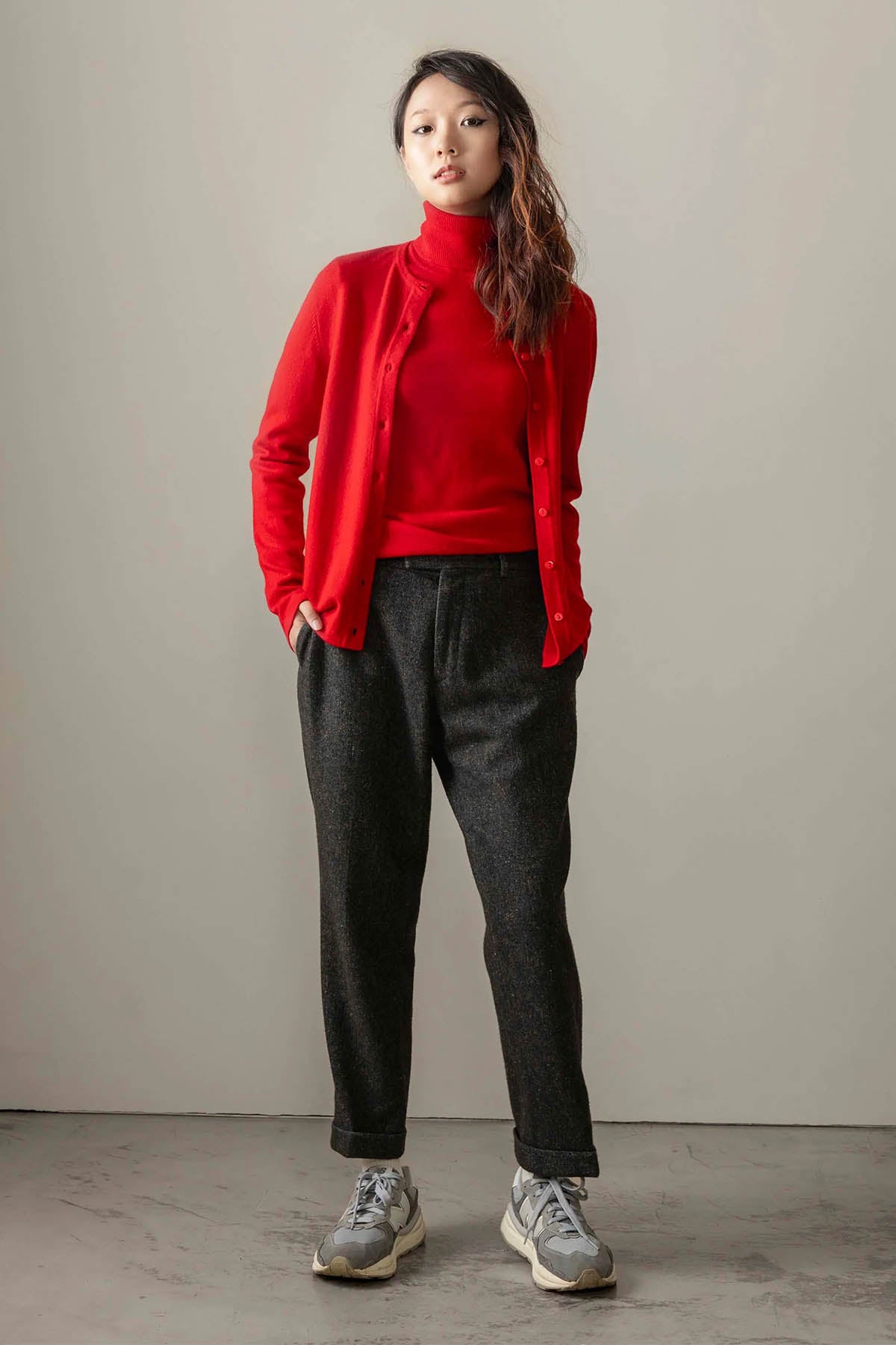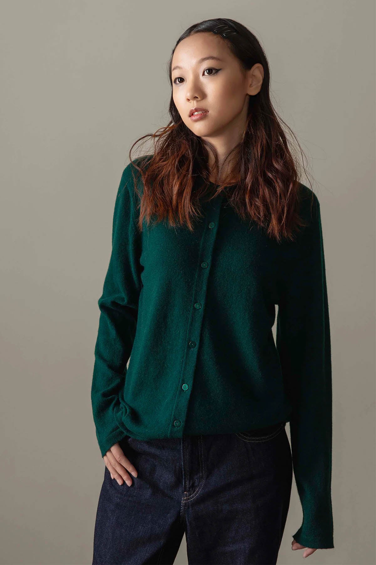 The High Button Cardigan is our take on the classic 50s style cardigan. Made from 100% cashmere with a slightly fitted style, it can be layered or worn as a stand-alone piece.