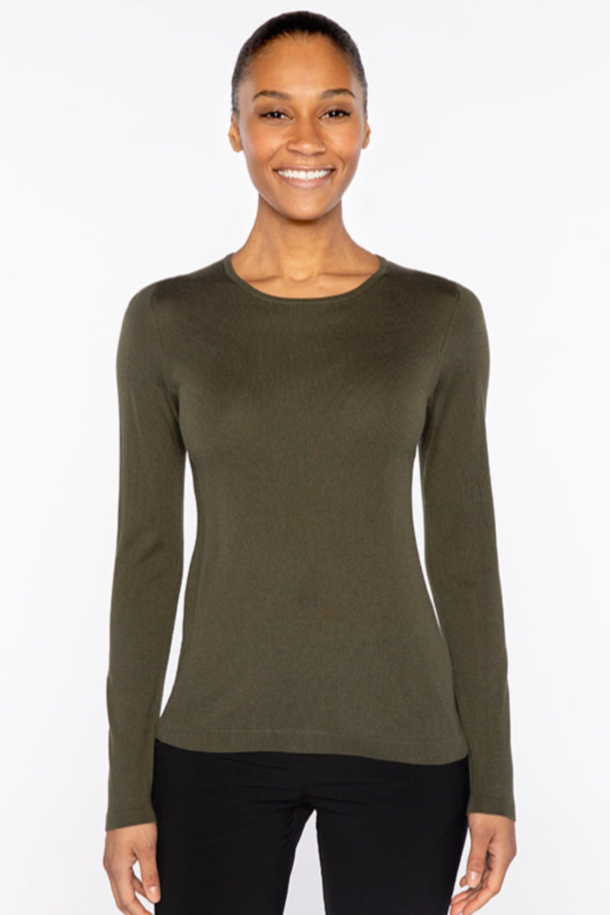 This fitted crewneck sweater exudes elegance with its smooth, soft touch and minimalist design. The natural sheen of silk combined with the warmth of cashmere creates an ultra-light, breathable garment perfect for layering or wearing on its own. With a slim, tailored fit, this pullover offers a sleek and polished look.