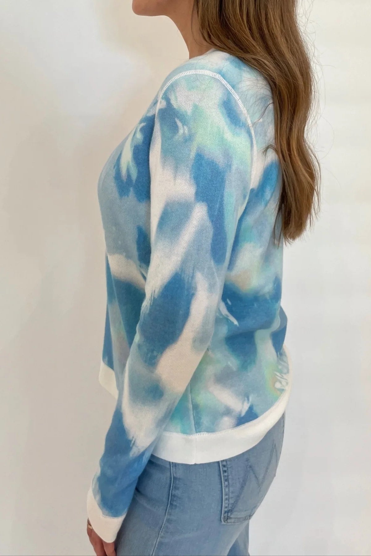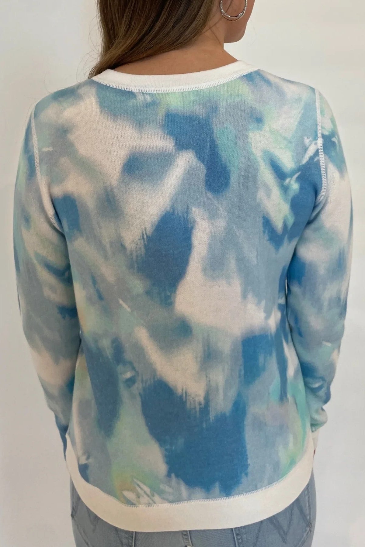 Add a touch of artistry with the Waterway Print Crew, crafted from a soft cotton cashmere blend for versatile luxury. This elegant crewneck sweater features a waterway-inspired print, ideal for travel outfits or everyday spring wear when paired with pants. Its breathable, lightweight fabric ensures comfort and style, making it a unique and practical addition to your luxury knitwear collection