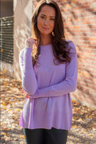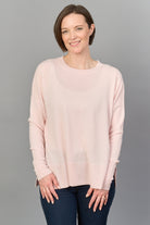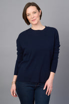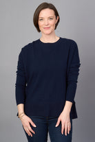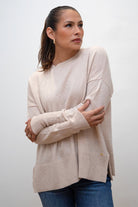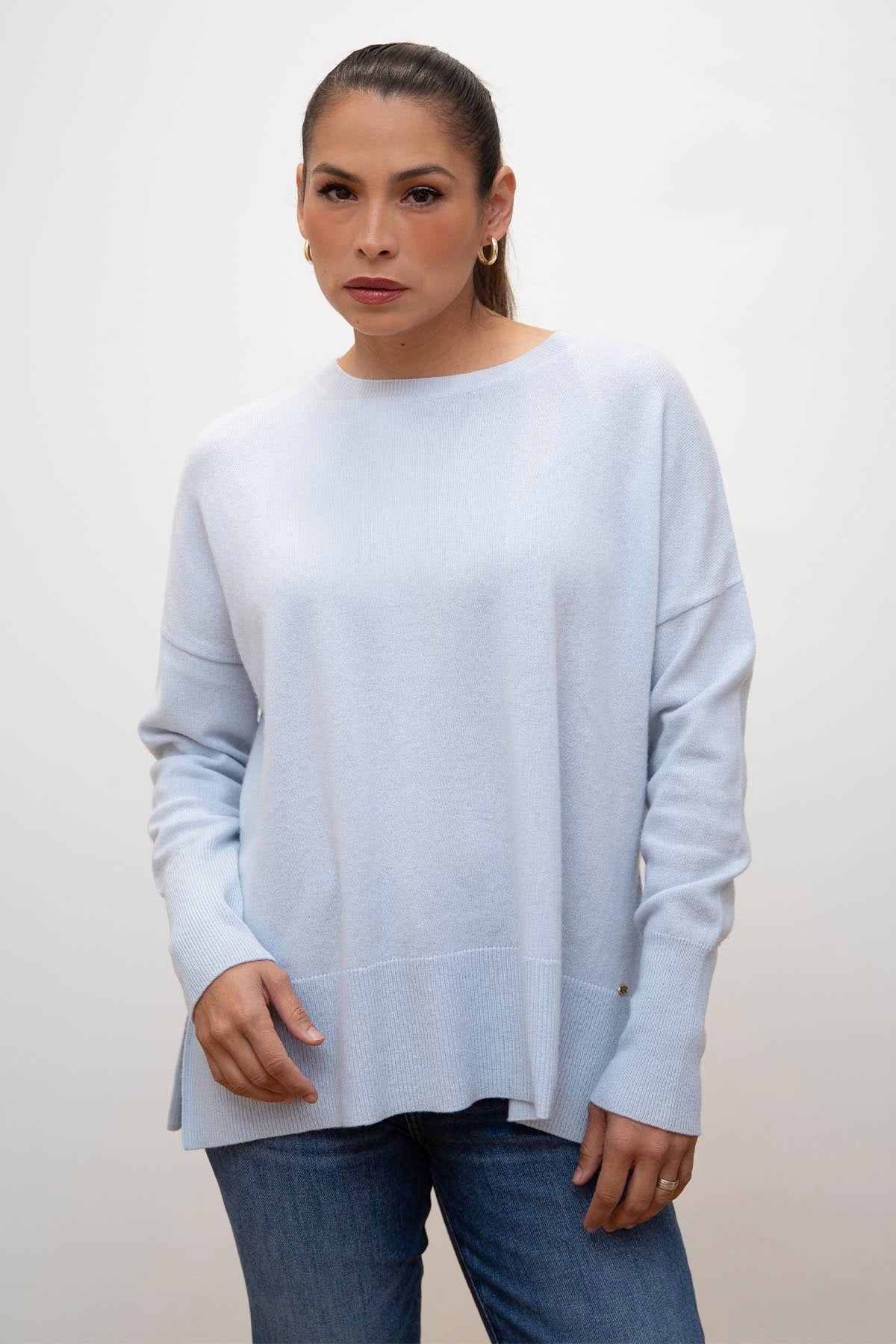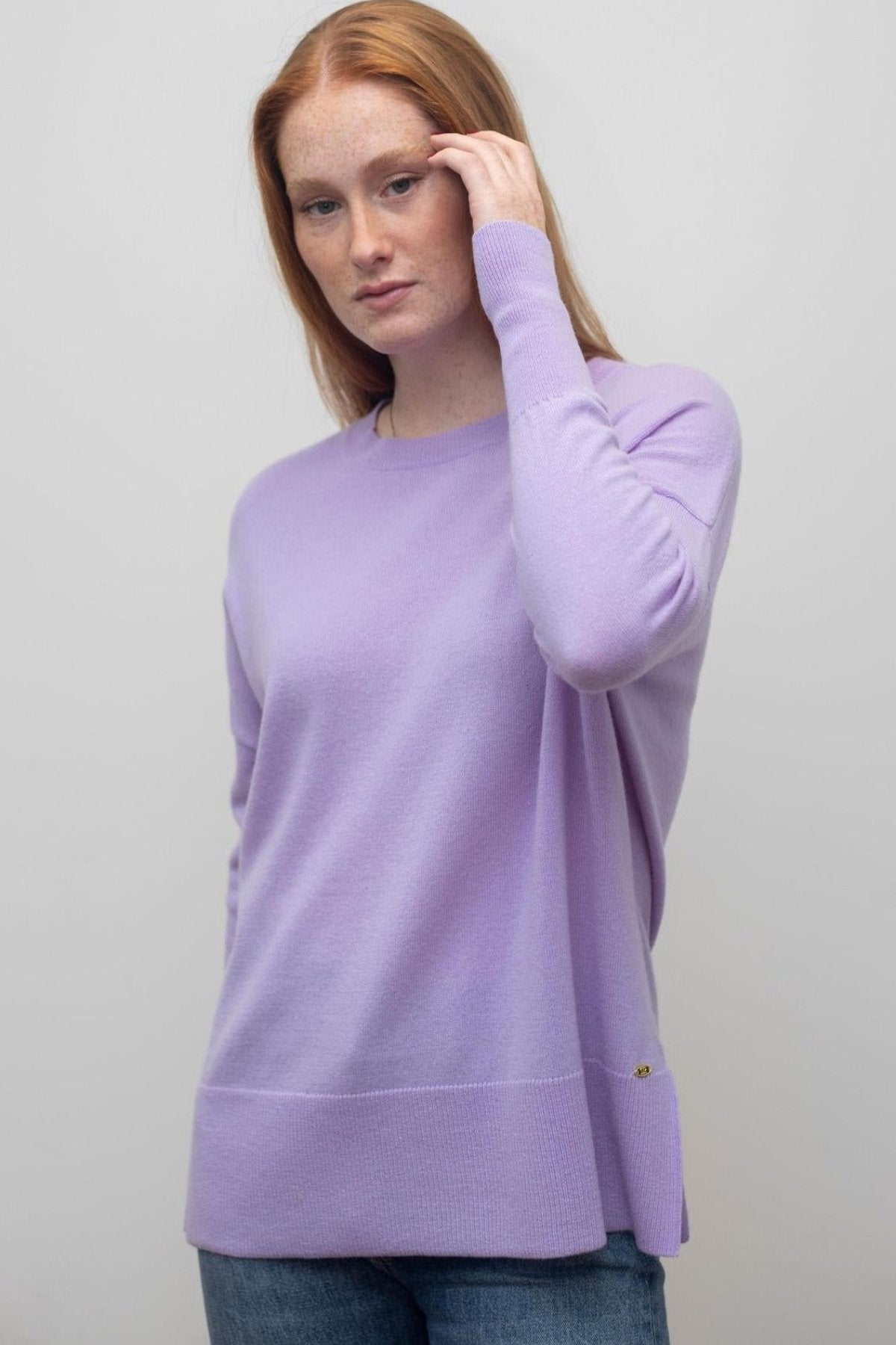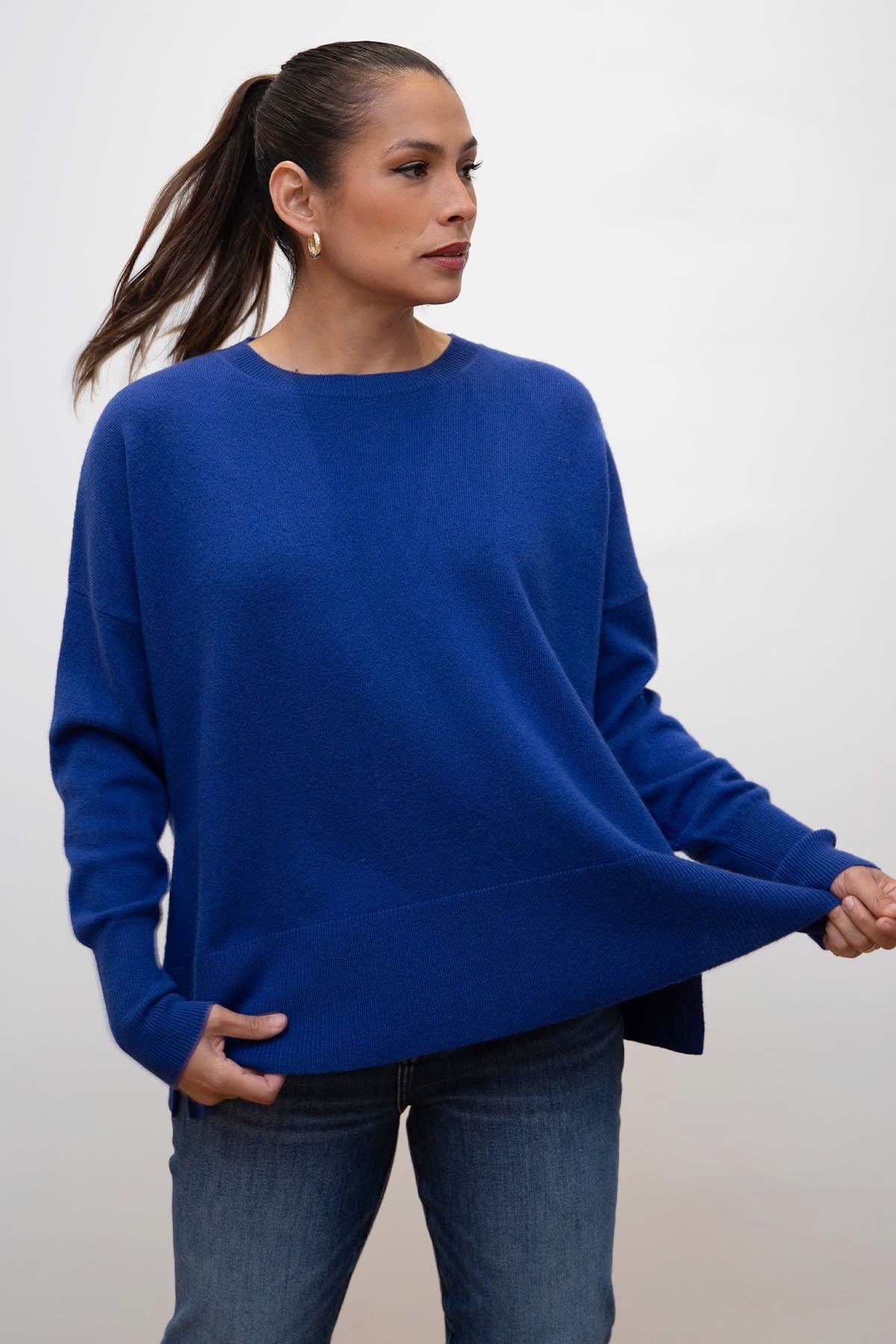 Our Modern Crew w/slit is made with the finest cashmere, and is the cold weather's best friend. It has a comfortable crew neck with a relaxed fit. The arms and bottom have a ribbed hem, featuring side slits on both sides. Pair with our cashmere Cuff Pant for the ultimate in coziness!