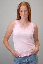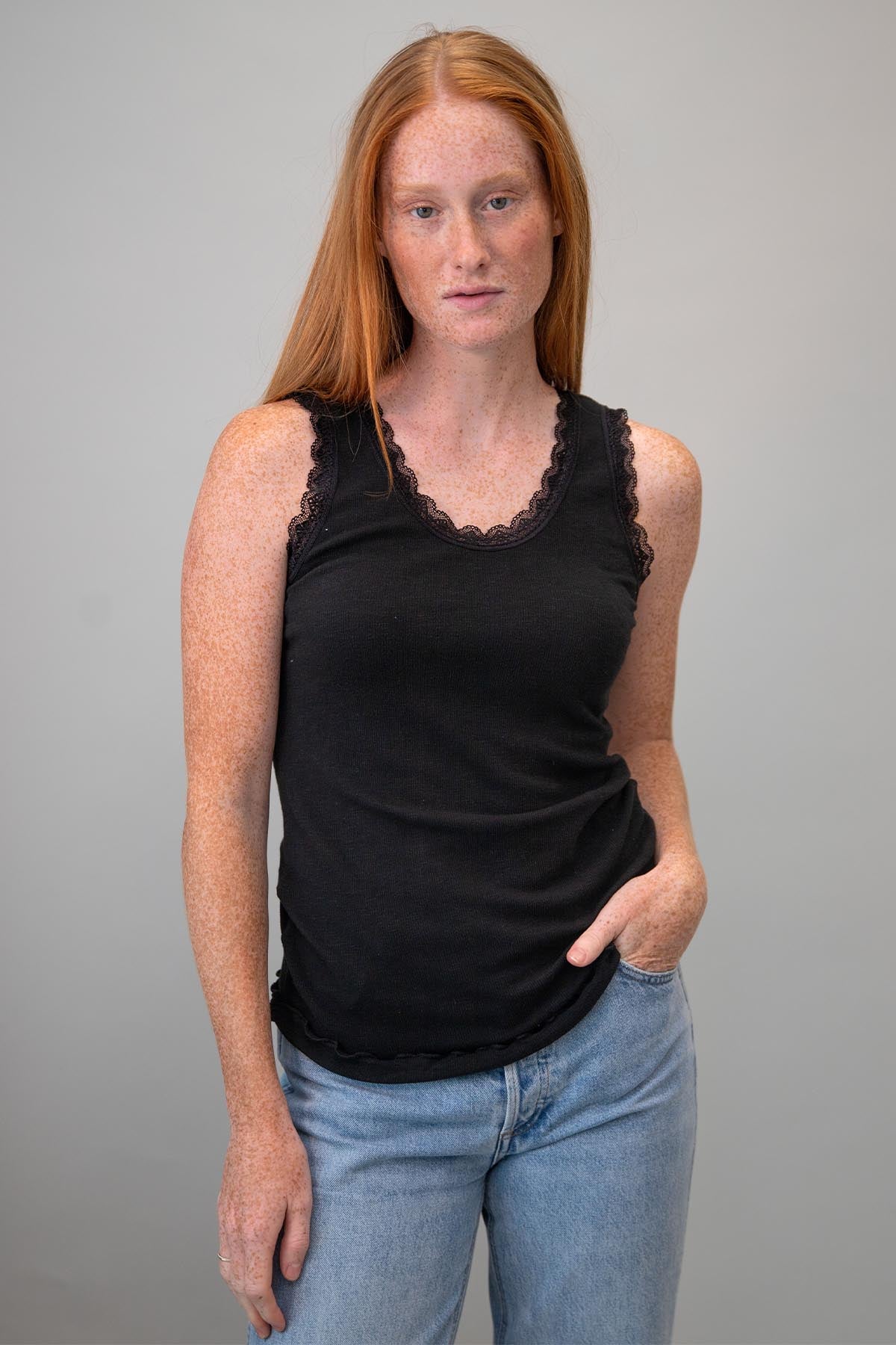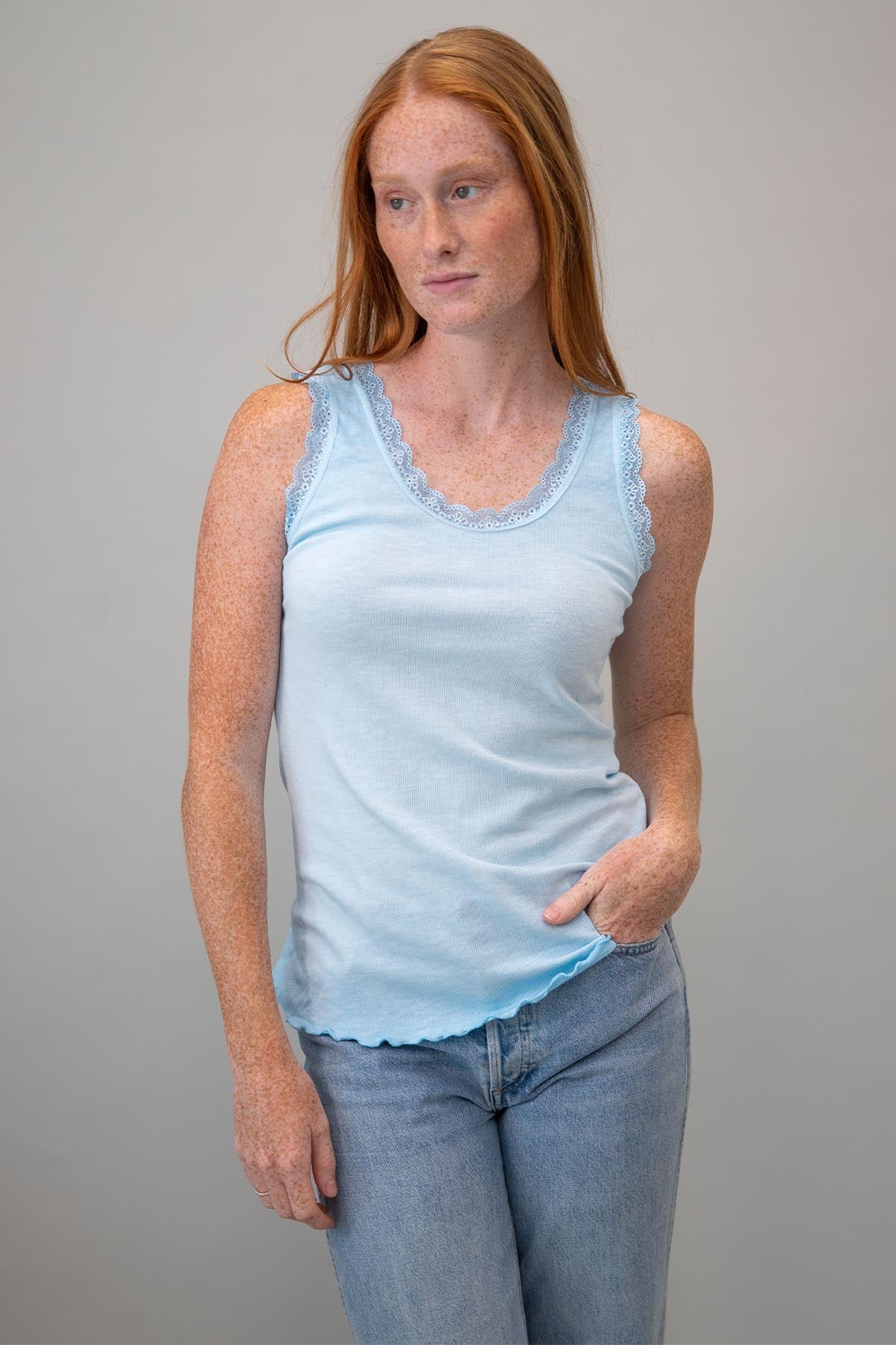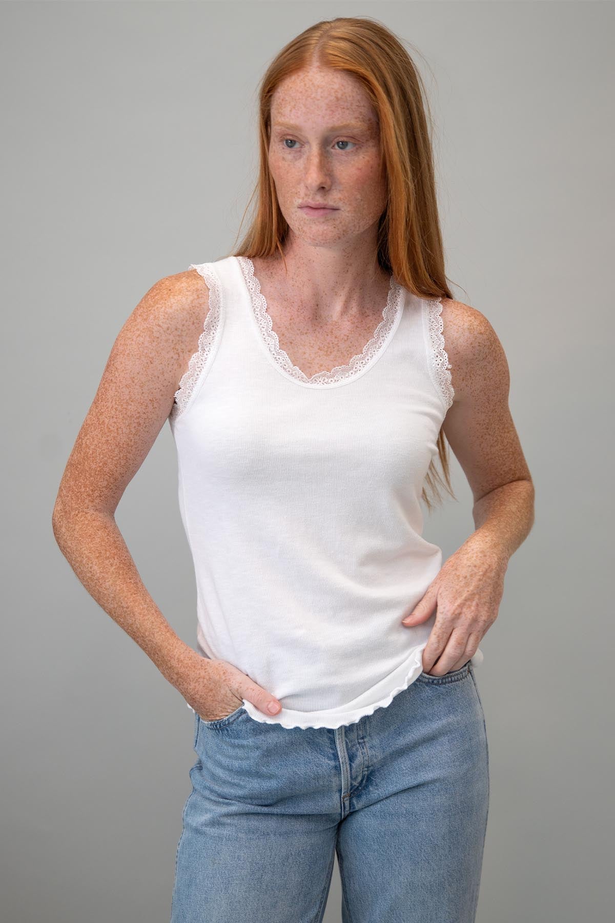 This wide strap cami is crafted from soft, 100% cotton with a hint of stretch for comfy wear all day long. Delicate lace trims the neckline, armholes, and hem, adding a flirty touch to your look. Perfect for layering or wearing solo.