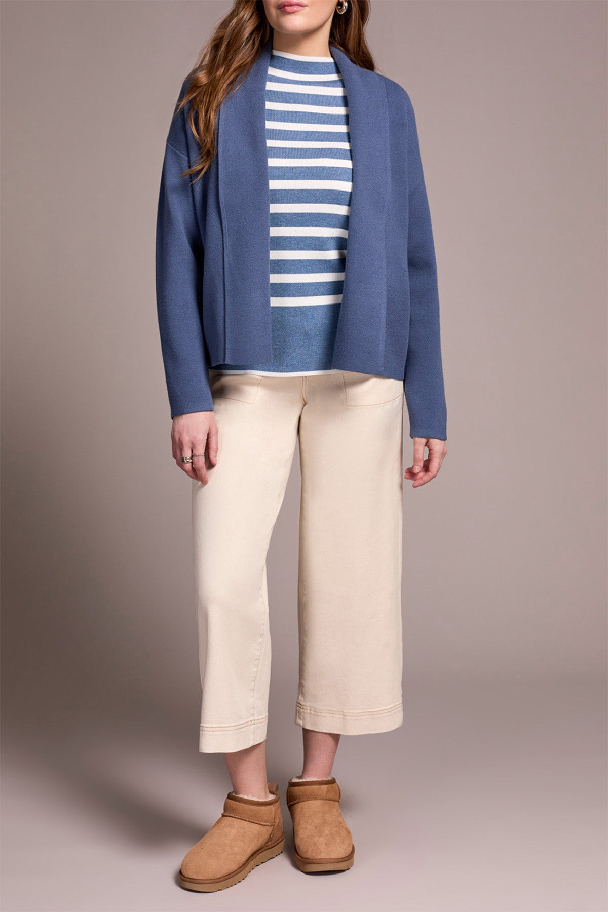 Layer on effortless warmth with this long-sleeve coatigan, designed for laid-back comfort and extra coverage. The shawl collar adds a refined touch, while the double-knit yarn helps retain body heat for a cozy, snug feel.