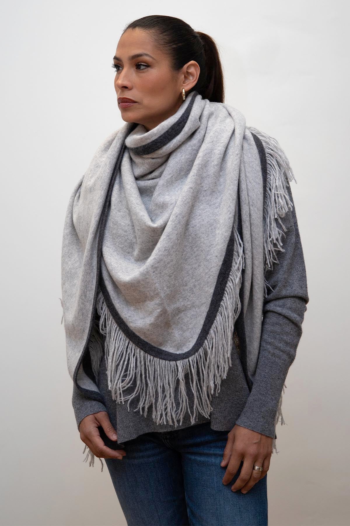 New to the Lemonwood Cashmere Collection, our Cowboy Wrap is made of 100% luxurious cashmere. With a contrasting trim and fringe detail on two of the three sides, it will keep you warm and stylish in the cooler weather.