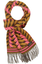 People can't get enough of these warm winter scarves in FRAAS' patented Cashmink quality. They are wonderfully comfortable to wear, and a vibrant update to any winter coat. This wider scarf size can be wrapped in a variety of styles: in a casual loop around the neck, tucked in like an infinity-scarf, or as a trendy accessory for extra warmth draped over the shoulders. This versatile graphic pattern makes this a great accessory for a sporty casual look, or a fashionable update for your elegant evening coat. The acrylic fibers used here are 20% finer than cashmere, with the same soft warmth at a much better value.