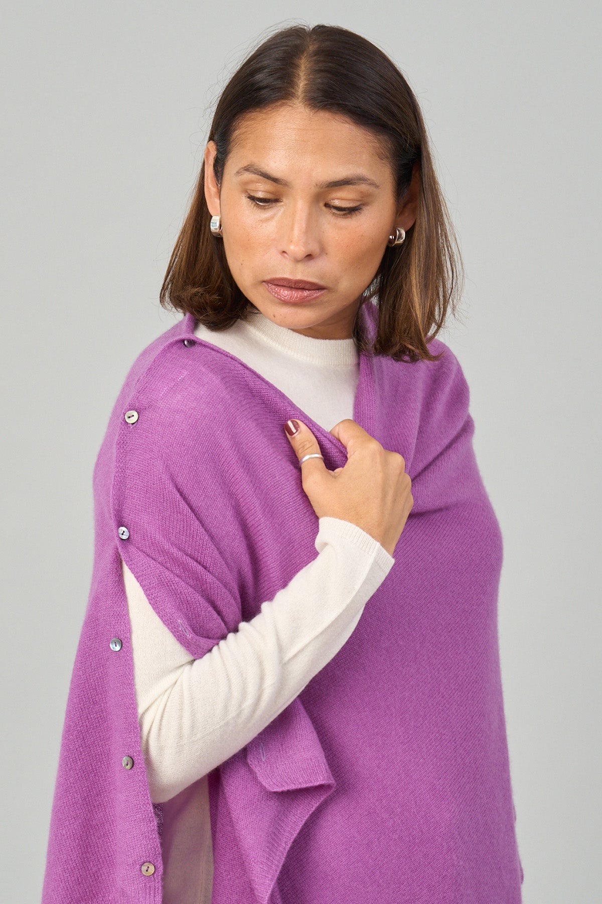 Our cashmere Peony Button Poncho is dyed with non-toxic dyes. The Peony is offered in a wide range of colours, from timeless neutrals to on-trend hues, with exclusive shades you won’t find anywhere else.