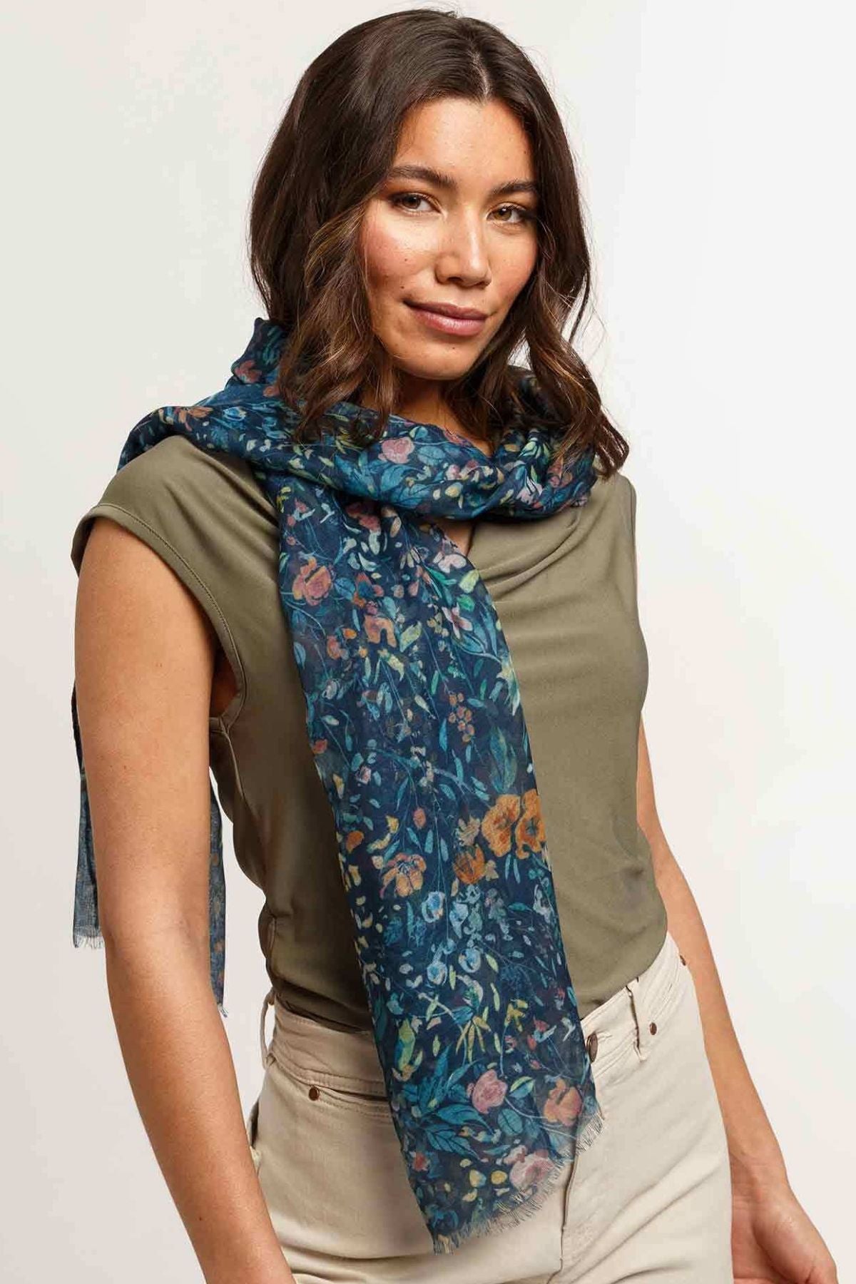 Fashionable & Sustainable Prints Please! The fibers in this fun floral printed scarf have been recycled from plastic bottles. Try this versatile flower style tied in a classic scarf shape, thrown over your shoulders, or let it hang down to show the design and colours. Pairs well with your favourite jeans, fashion dresses or work blazer. A fabulous fashion accessory that is Good for you. Good for the planet.