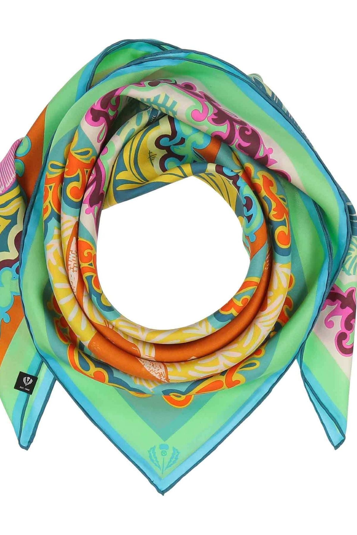 This soft silk square printed with this elegant floral inspired design is a real conversation starter. The oversized shape can be worn in a variety of ways - try it in a classic bandana style, knotted like a tie, draped loose over the shoulders, or as a stylish head scarf. The vibrant print and hand-rolled hem make this an elegant and special gift. No need to worry about size here, a perfect gift for every style, every age.