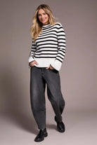 Embody effortless elegance with this striped sweater, featuring a warm funnel neckline that exudes sophistication. The long flare sleeves offer a graceful, flowing silhouette, while the soft spun rayon provides an indulgent, comfortable feel. This trendy piece seamlessly elevates your casual wardrobe, adding a refined yet relaxed touch to your everyday style.