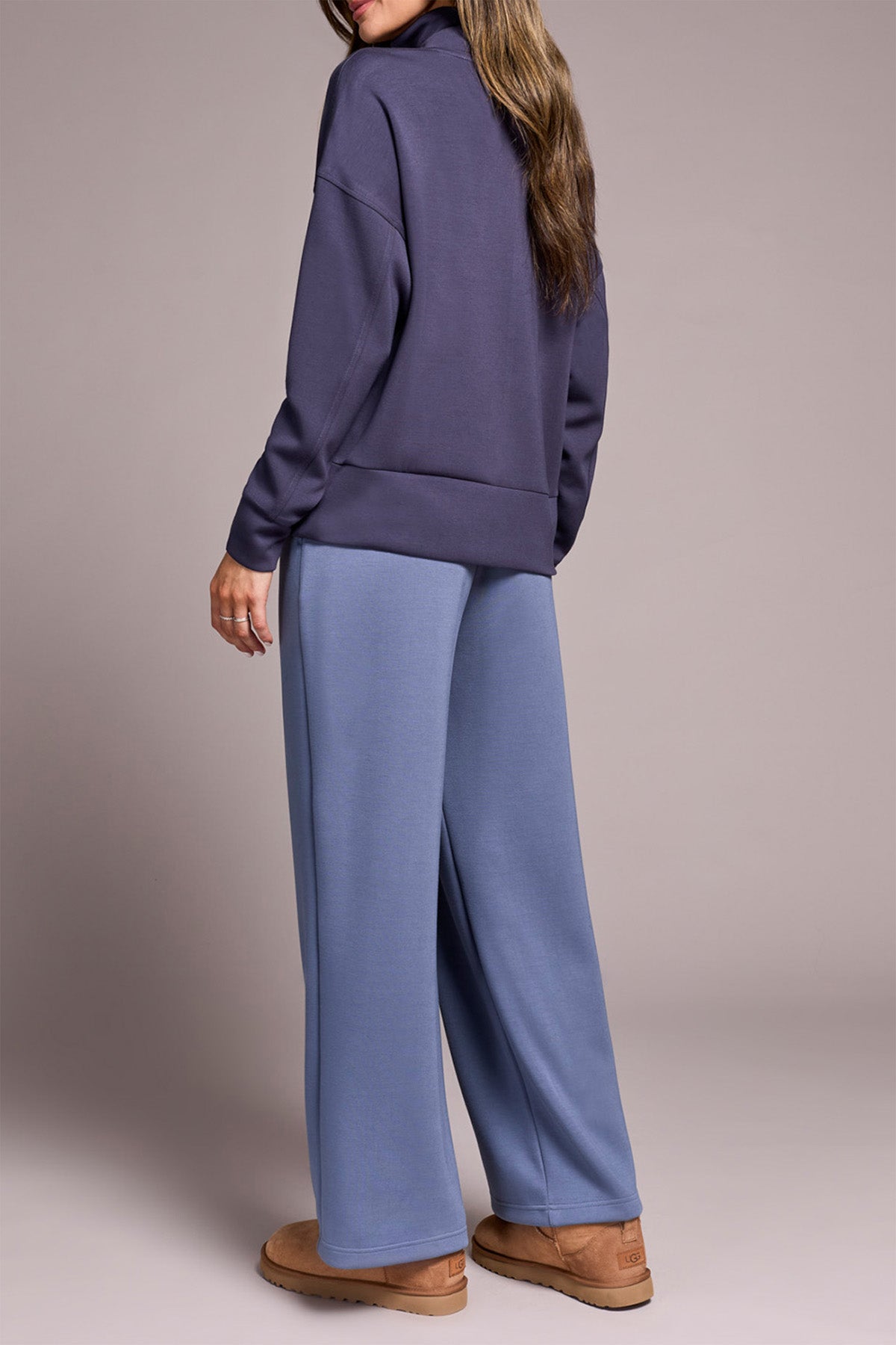 Elevate your casual wardrobe with this contemporary knit top, crafted from soft scuba fabric for a sleek, structured feel. The funnel neckline and drop shoulders create a relaxed yet polished silhouette, while front stitching adds subtle detail. Elasticated cuffs and hemline provide a comfortable fit, and long sleeves offer cozy coverage for cooler days.?