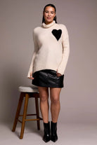 Infuse your cold-weather wardrobe with charm in this fashion-forward sweater, featuring a statement intarsia heart motif at the chest. Designed in a soft, acrylic blend for rich texture and warmth, it’s finished with a cozy turtleneck, long sleeves, and a high-low hem that creates an effortlessly flattering silhouette.