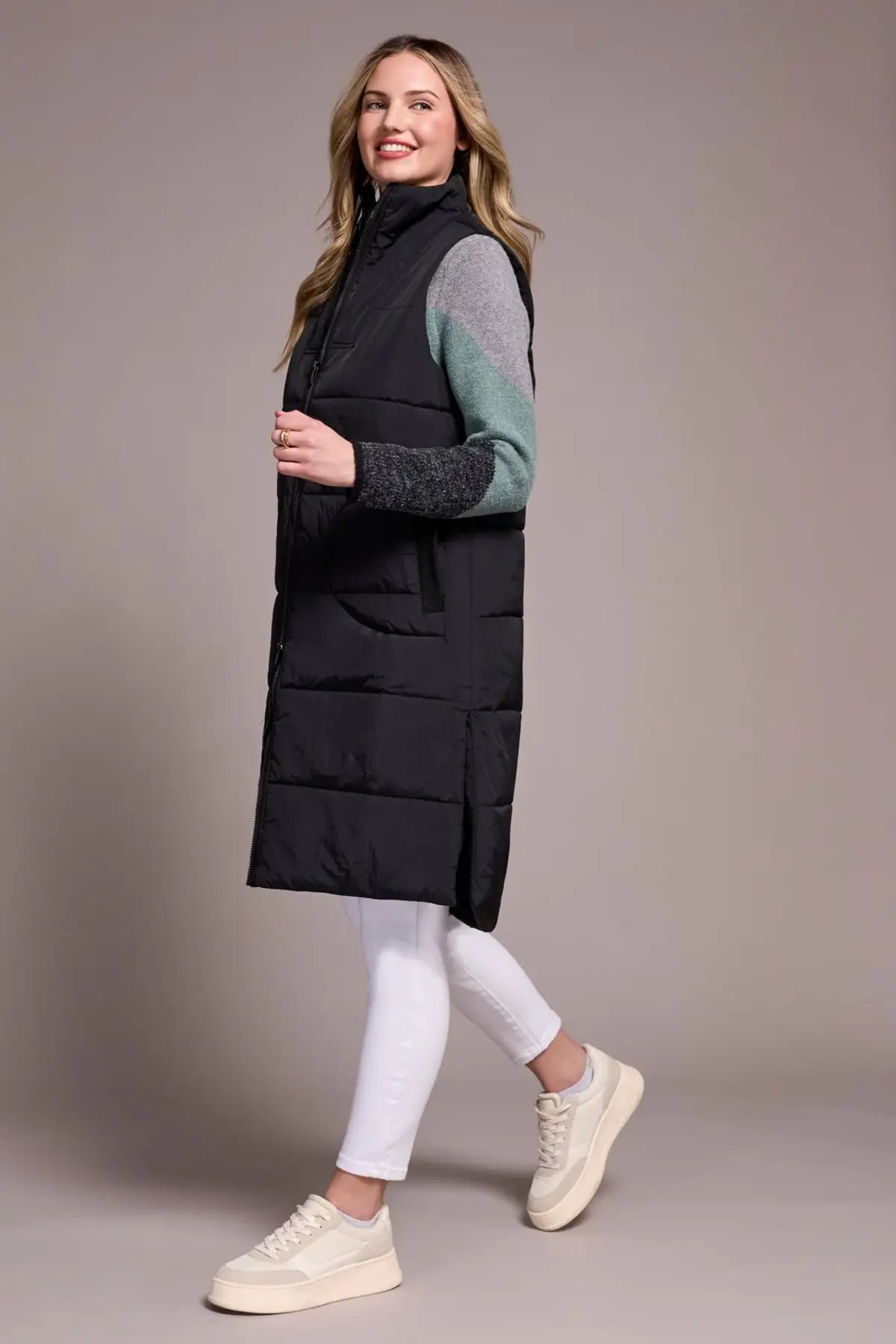 Stay impeccably warm and stylish in this elegantly quilted vest, crafted with a longline silhouette for enhanced coverage and sophistication. Lightweight polyfill insulation ensures optimal comfort without bulk, while a streamlined zip-front closure and functional pockets offer a seamless blend of practicality and polished design.