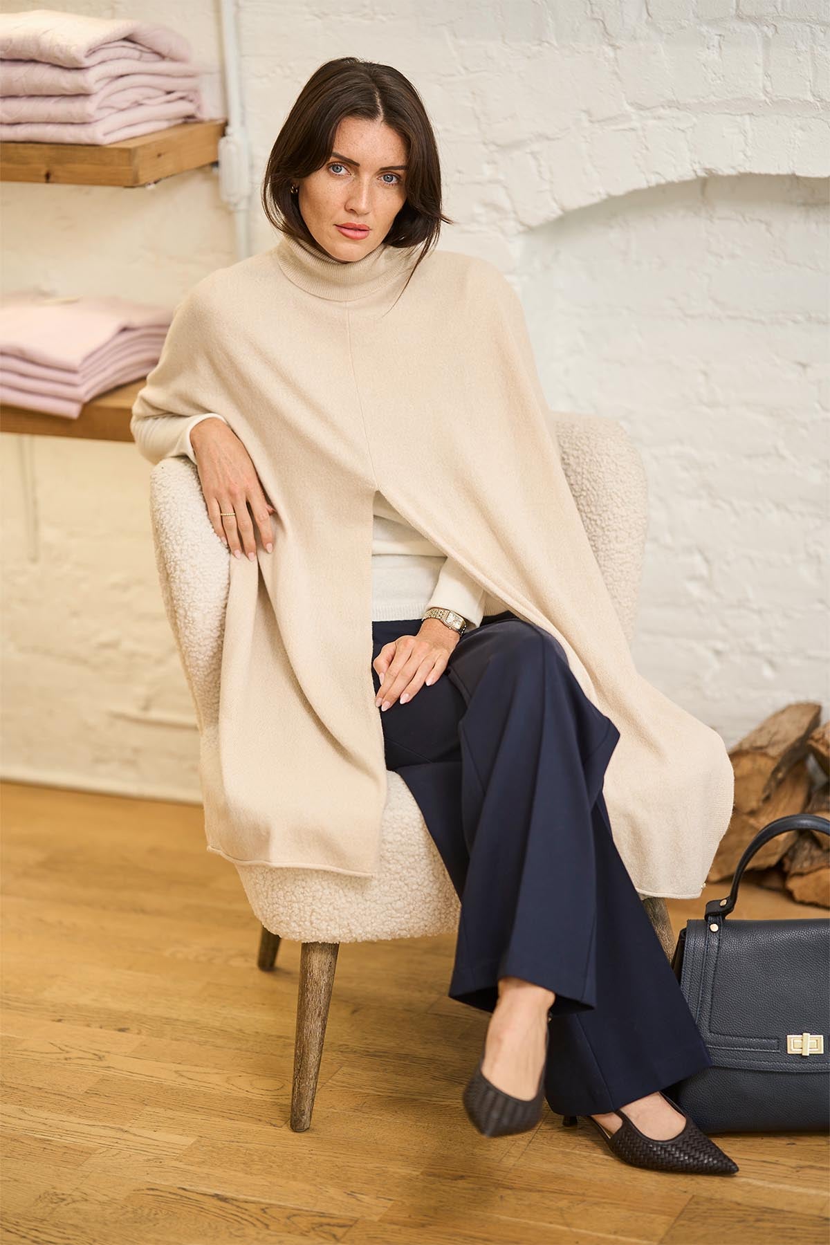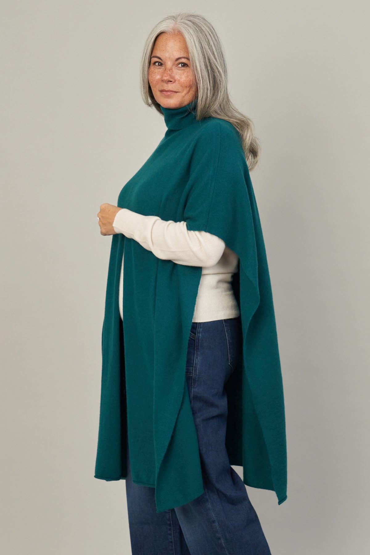 New to the Lemonwood Cashmere Collection! The Sasha Turtleneck Cape, with it's easy design and cozy turtleneck will keep you warm all season long. It features a long, flowy design with enough room to layer. The split front adds ease to movement, and an interesting detail. The Sasha is a unique piece for your wardrobe that you will cherish for years to come.