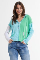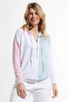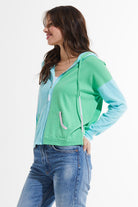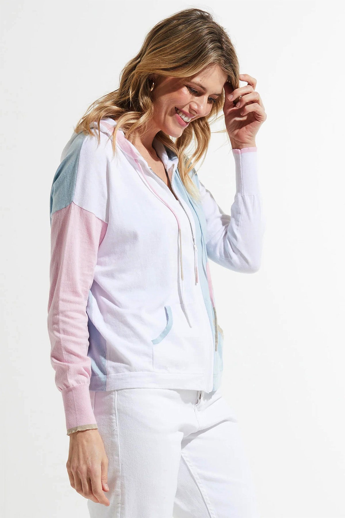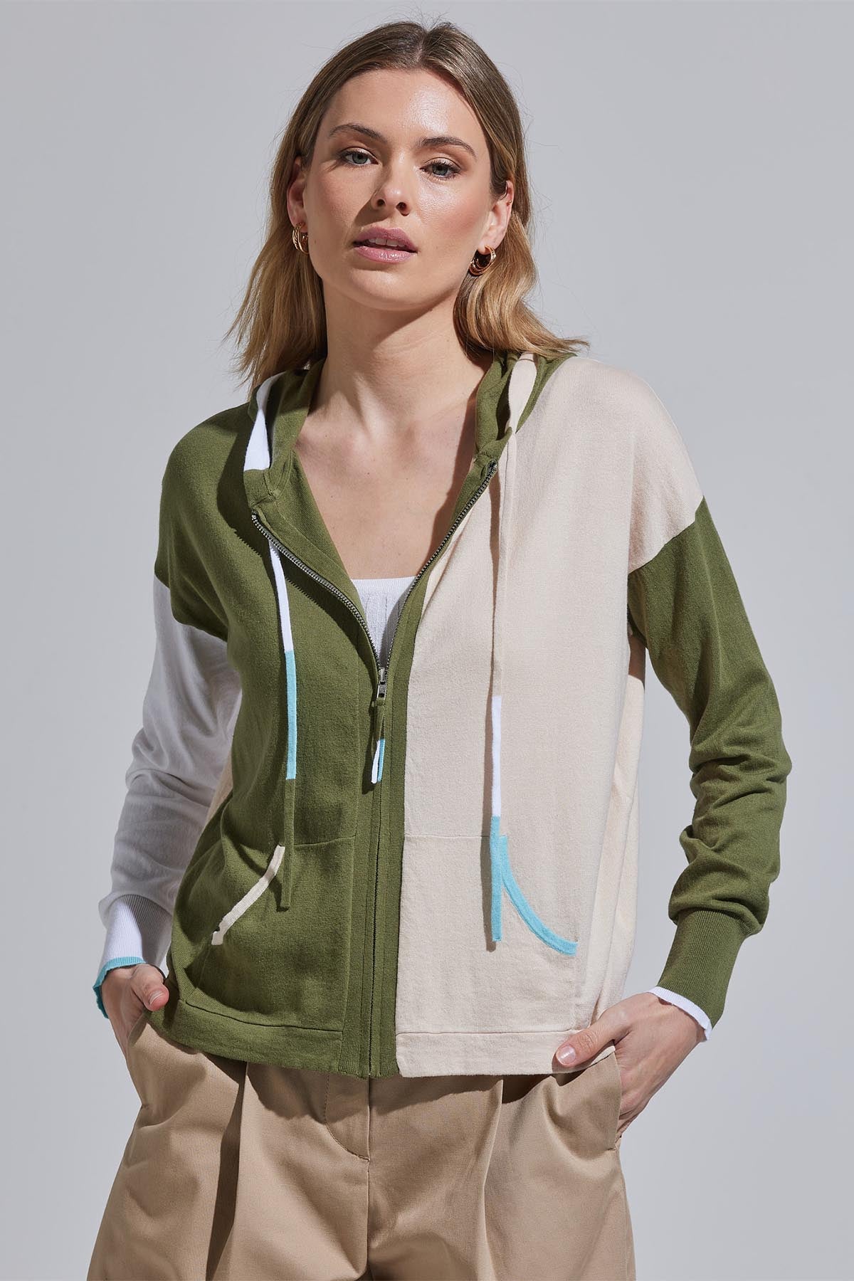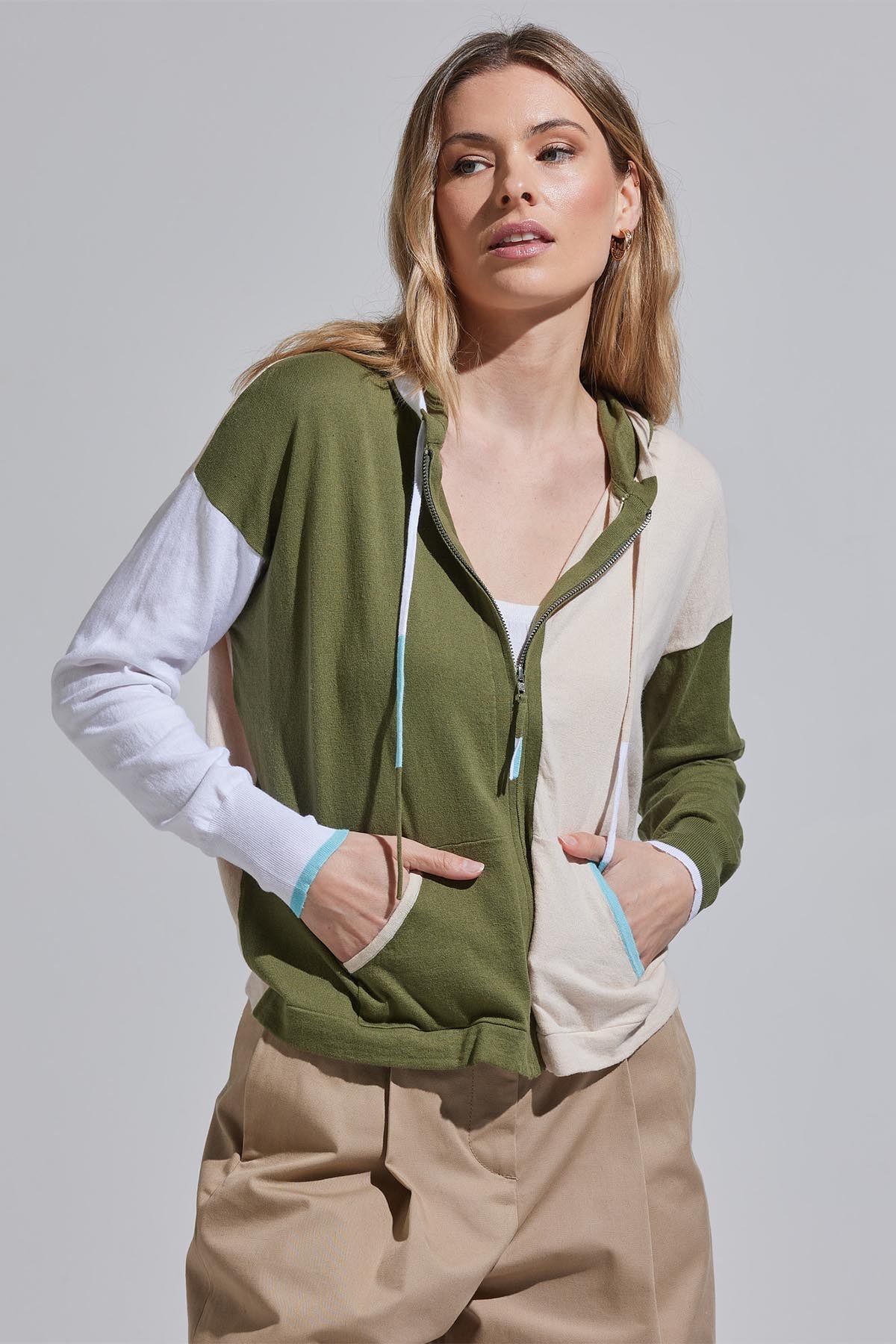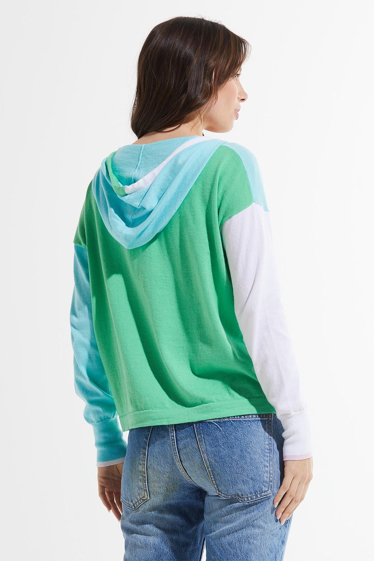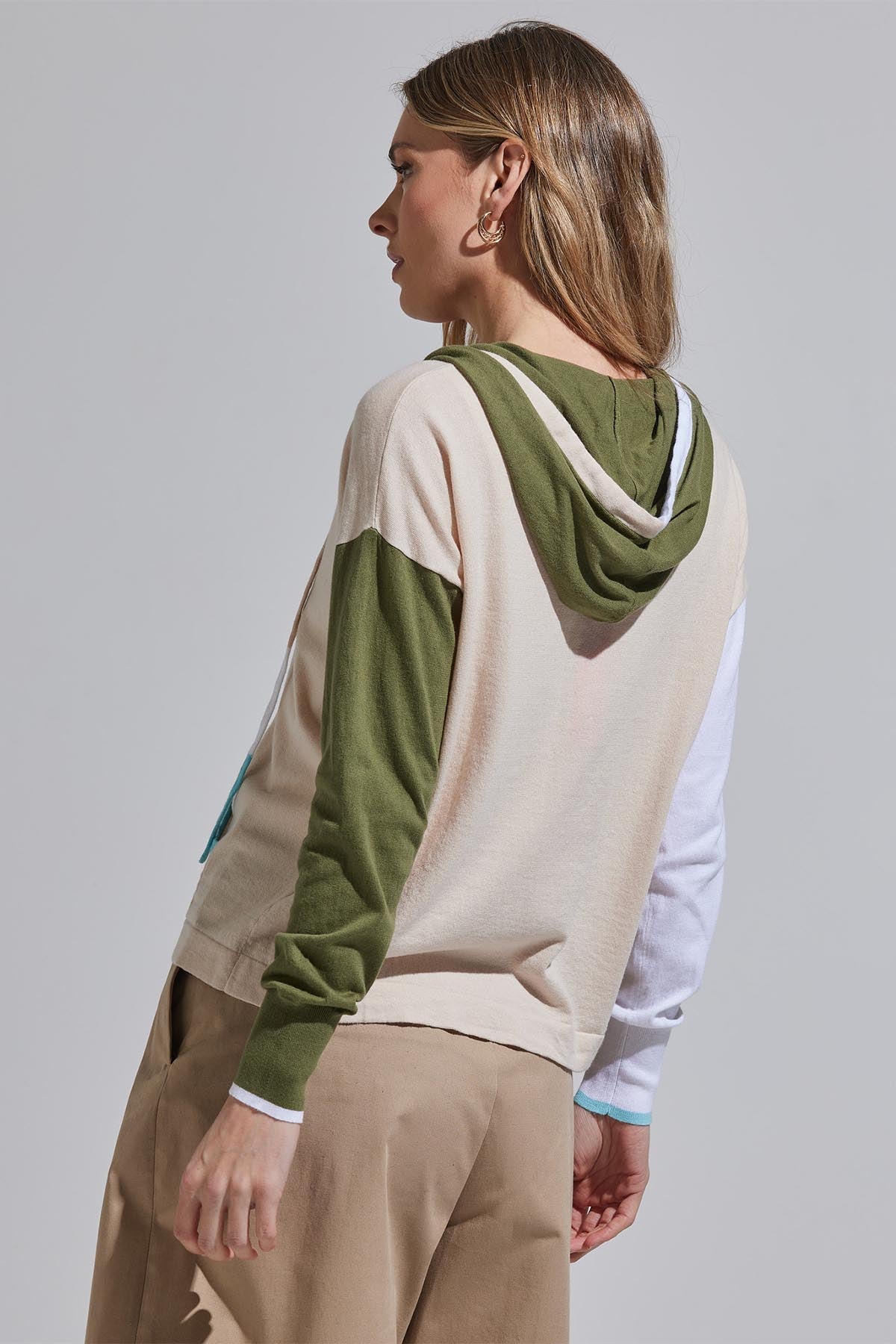 This Colour block Hoodie is a soft cotton knit classic with a touch of whimsy! The classic meets the unexpected with mixed shades of complementary colours and contrasting trim details. It's relaxed in shape, and so comfortable to wear.
