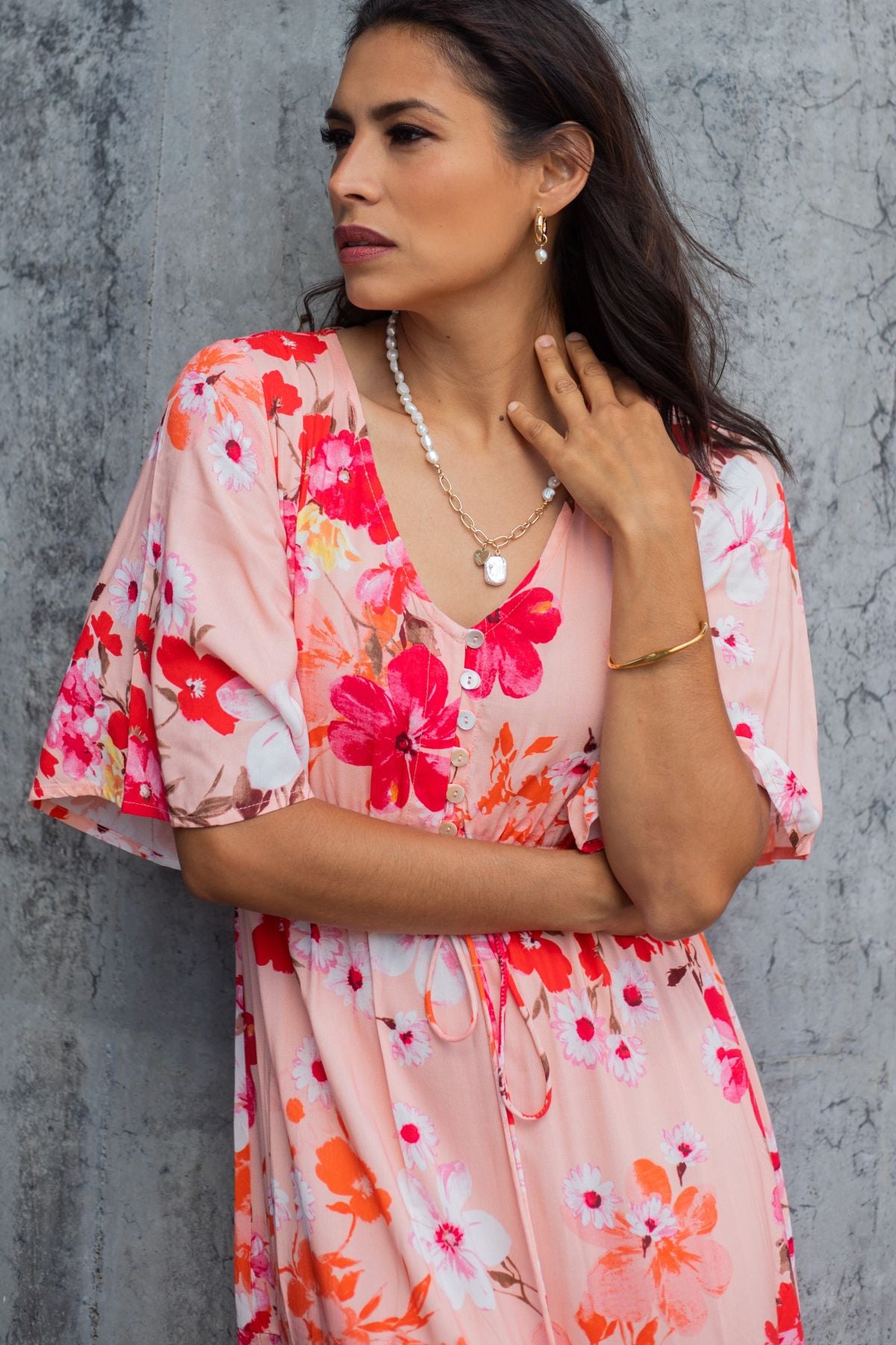 - Elbow length flutter sleeve
