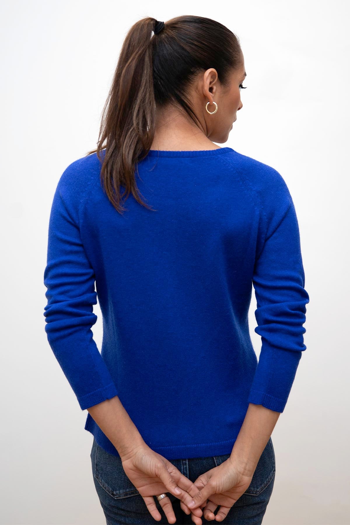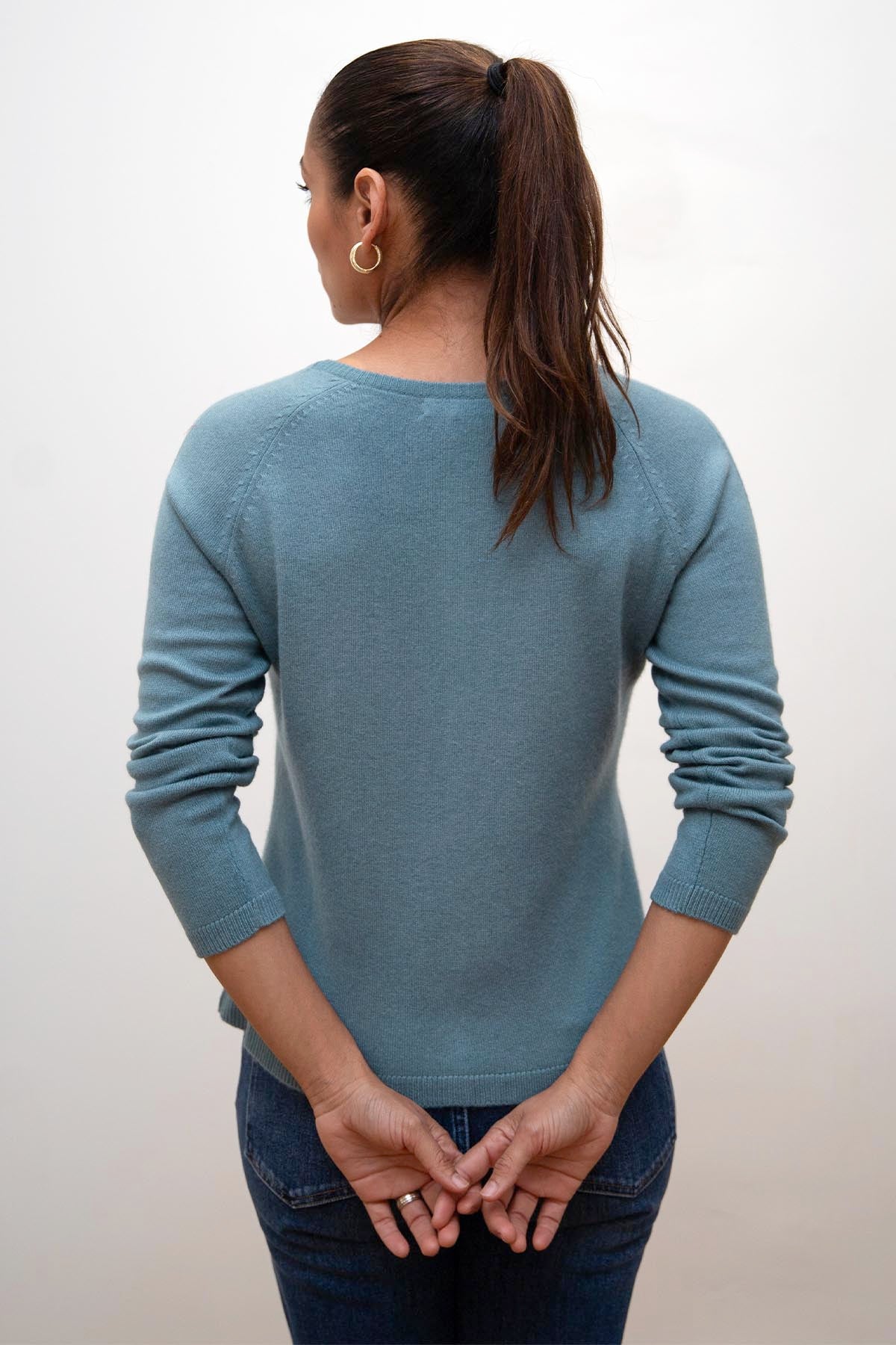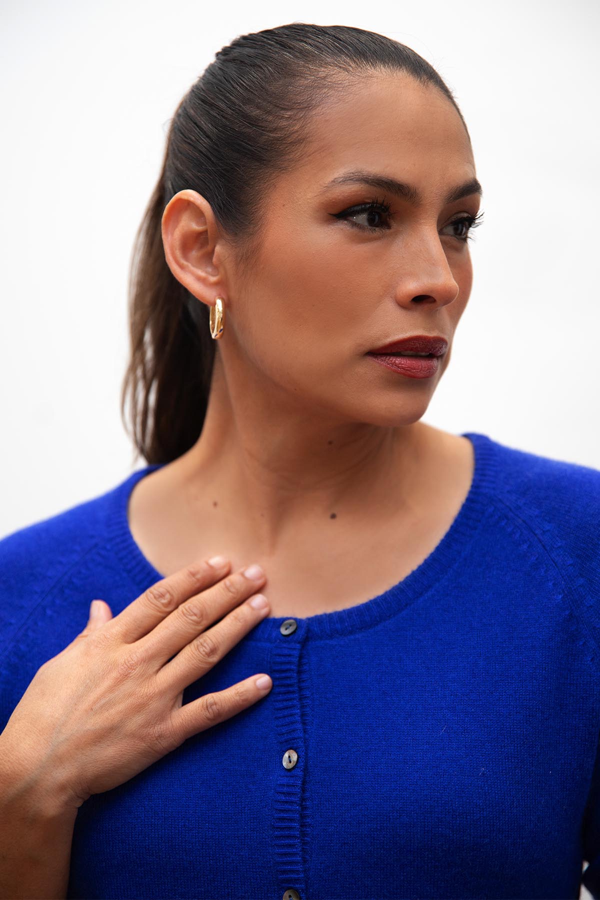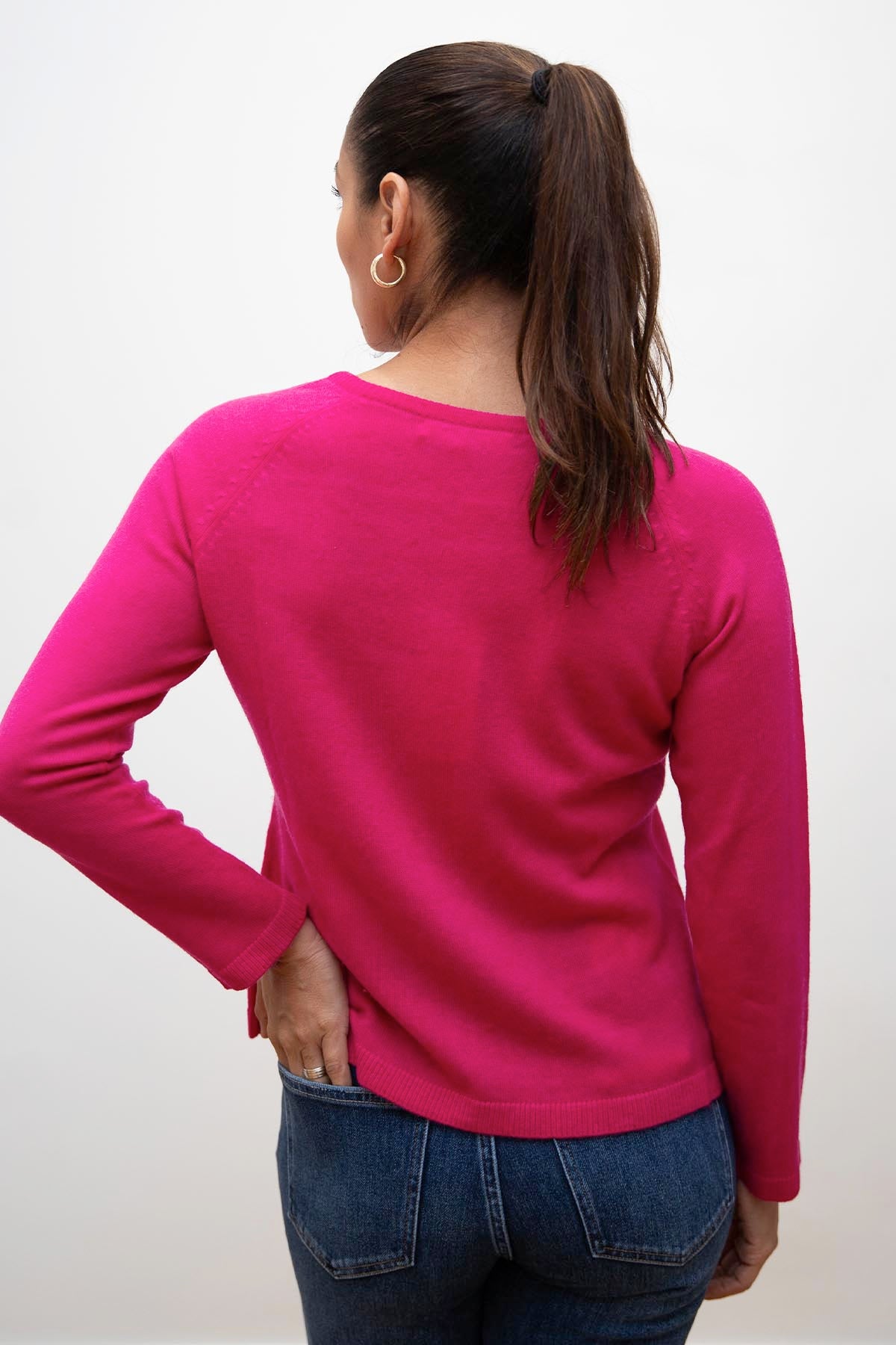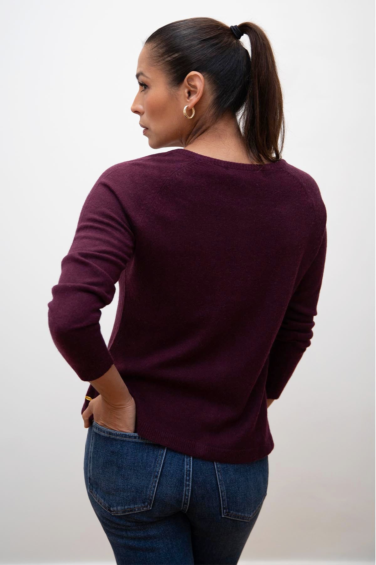 From our Cashmere Collection. This crew neck cashmere cardigan is a wardrobe classic. Similar to our Millie Cardigan, but with a looser fit and a more modest crew neckline. Delicate buttons down the front provide a feminine touch.