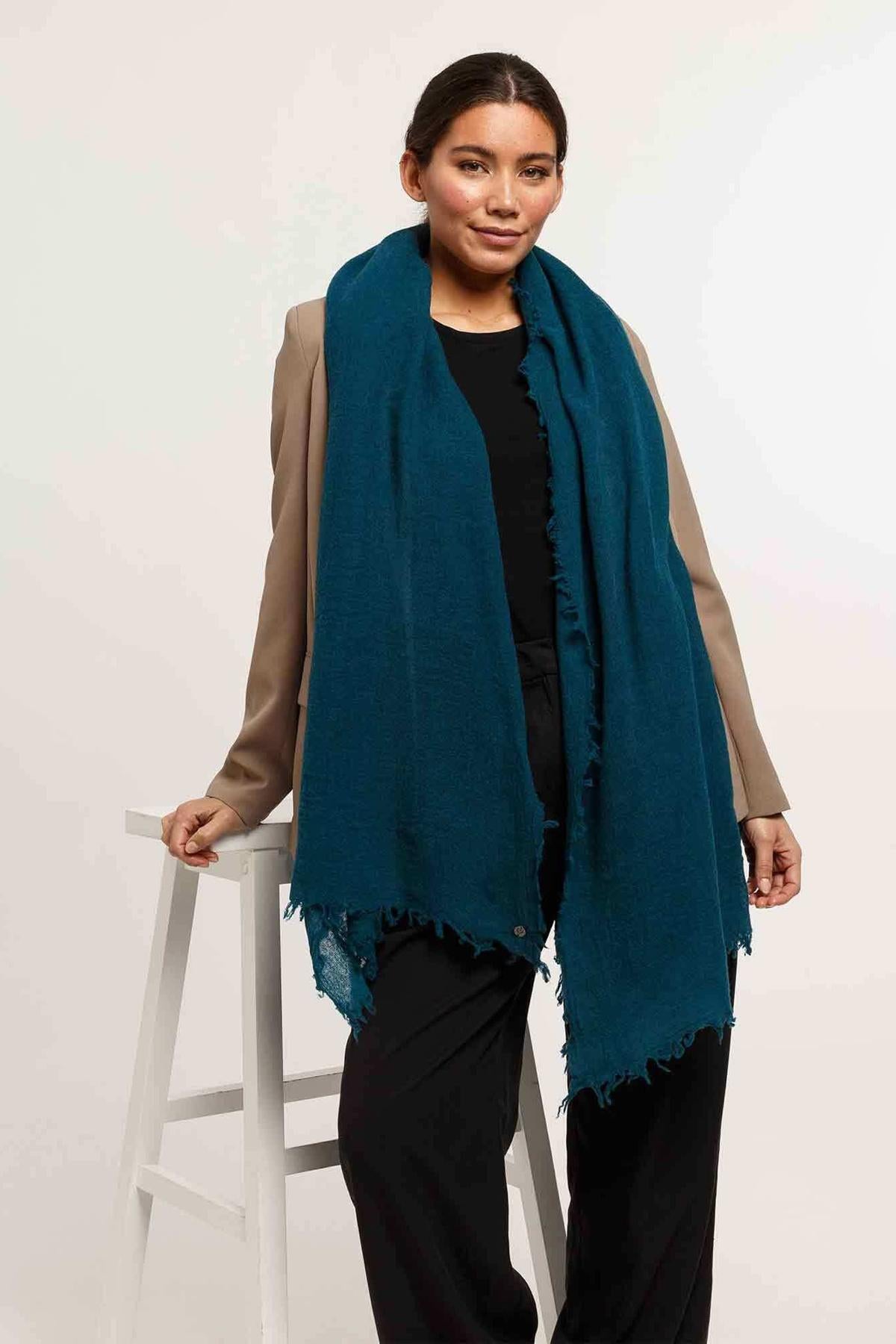 This versatile lightweight wool wrap in a range of fashionable colours will remain a go-to accessory in any closet. The fine woven natural fibers and cut fringe give warmth and softness while keeping you looking chic. Wear this as a cozy shawl pashmina, looped as a scarf, or tucked in as an infinity style. This shape makes for an excellent carry-on travel wrap, evening shawl, or a vibrant pop to any casual outfit.