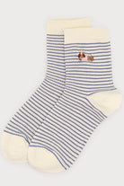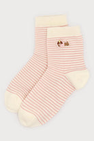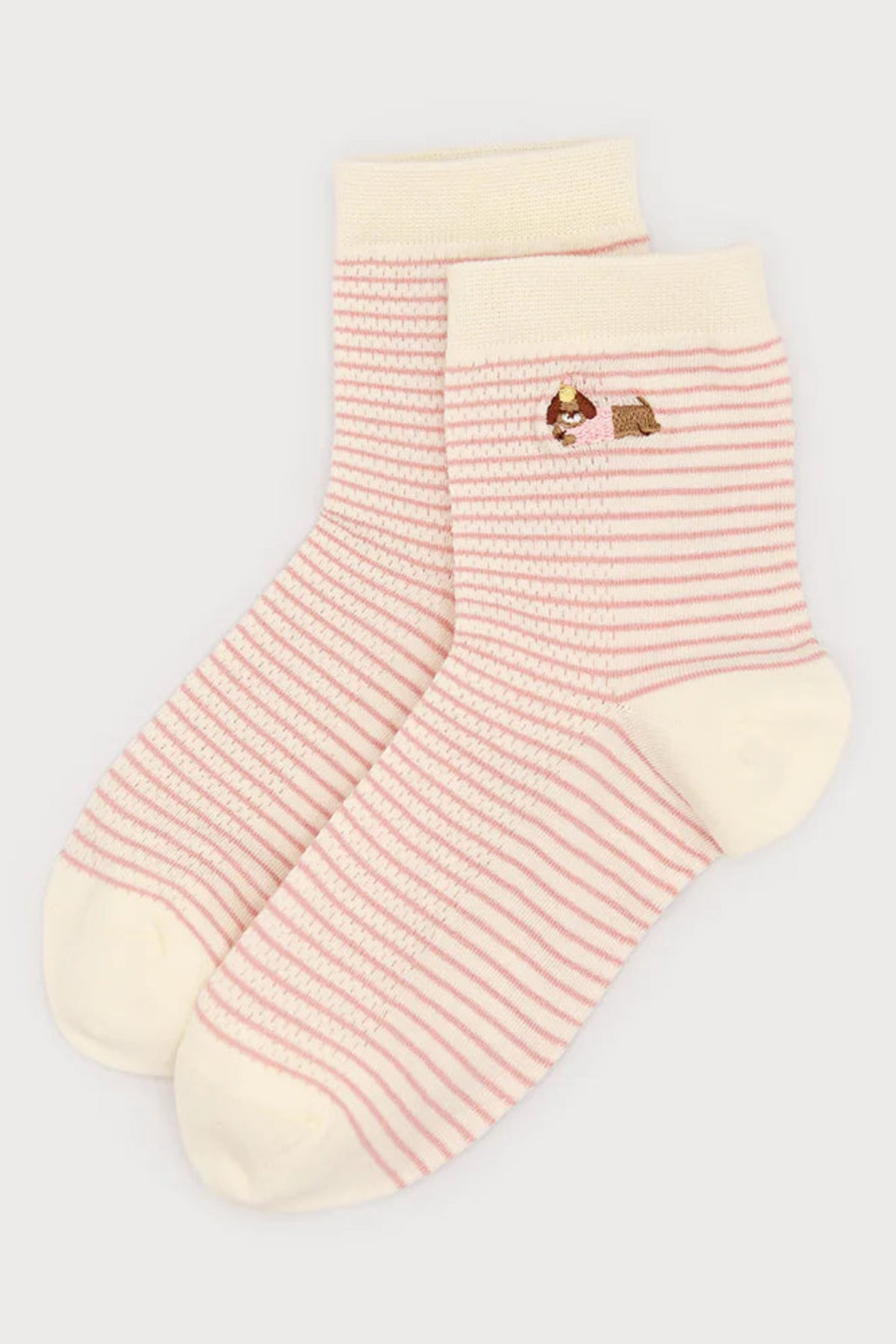 Fancy striped socks embellished with charming dog embroidery. Perfect for adding a touch of whimsy to your everyday look or to give to a dog lover. The soft and comfortable material keeps your feet warm all the time.